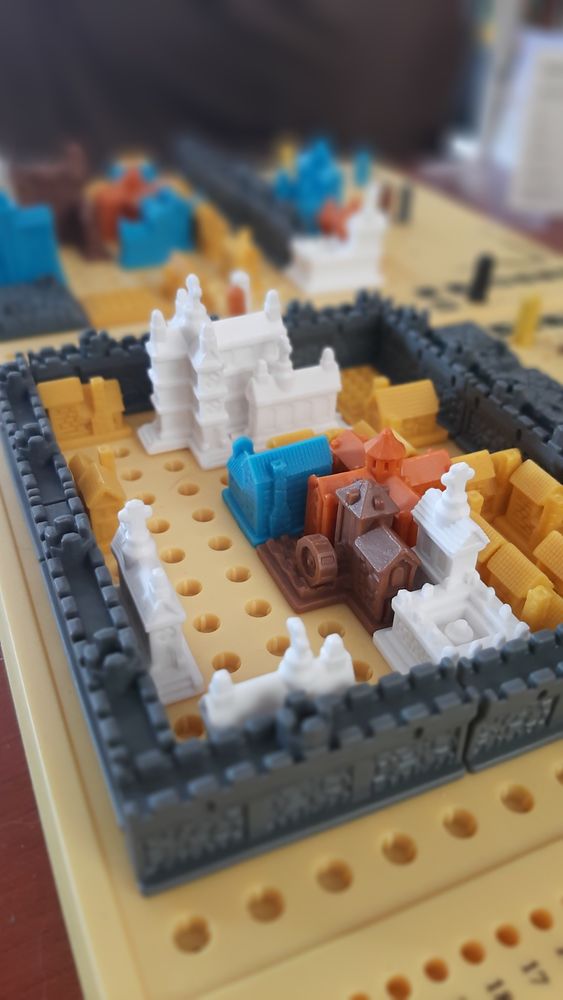 Это игра похоже на рол-н-д-райт, только вместо бумаги у вас - пластиковый планшет, а вместо ручки - модели настоящих зданий. Вы кидаете кубики ( у каждого будет свой, уникальный набор), и в зависимости от значений добываете ресурсы, строите здания, нападаете на других участников, повышаете уровень культуры.