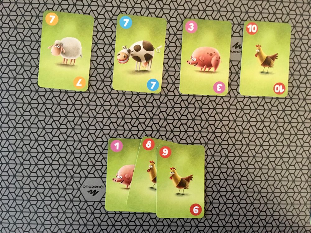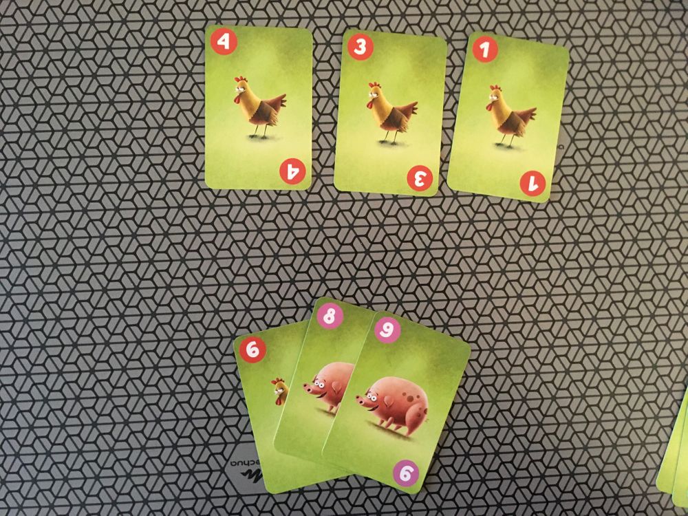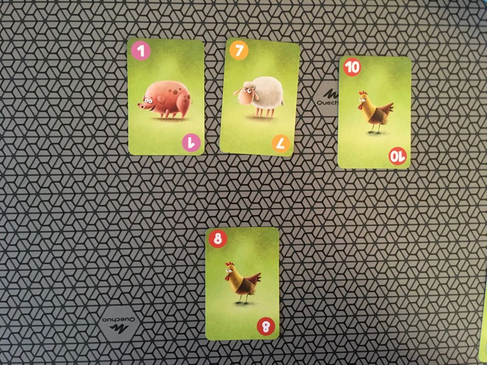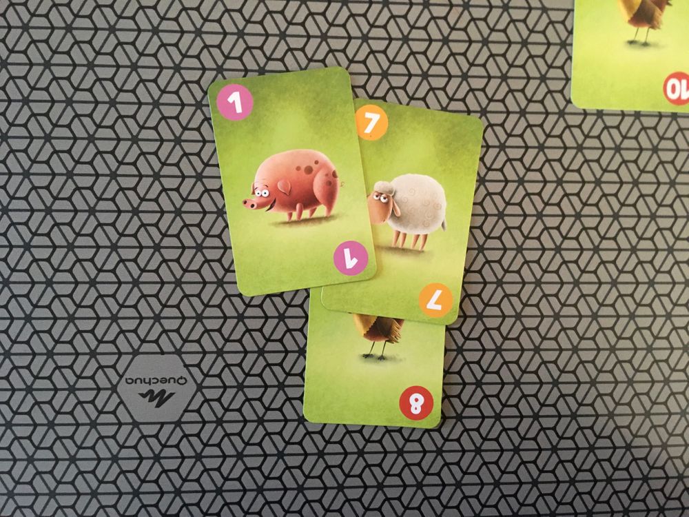 Вот и пригодилась мне карта с единицей. Выкладываю петуха со значением 8 и забираю свинью и овцу. 1+7=8. Карты откладываю в личную победную стопку.