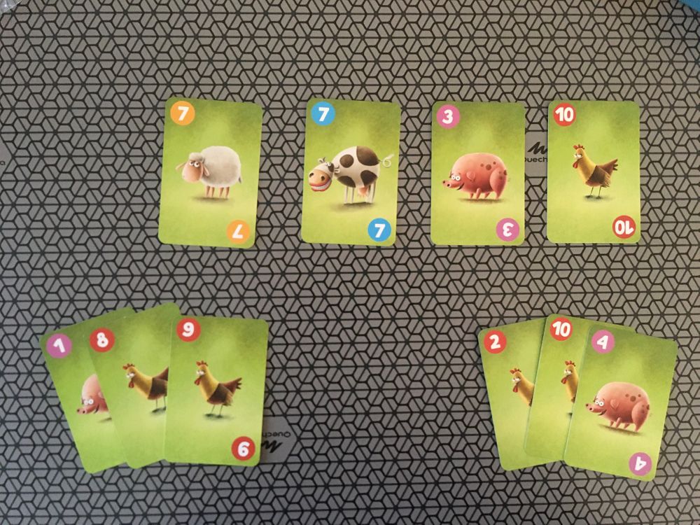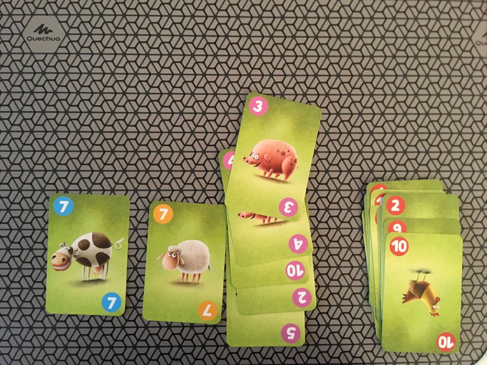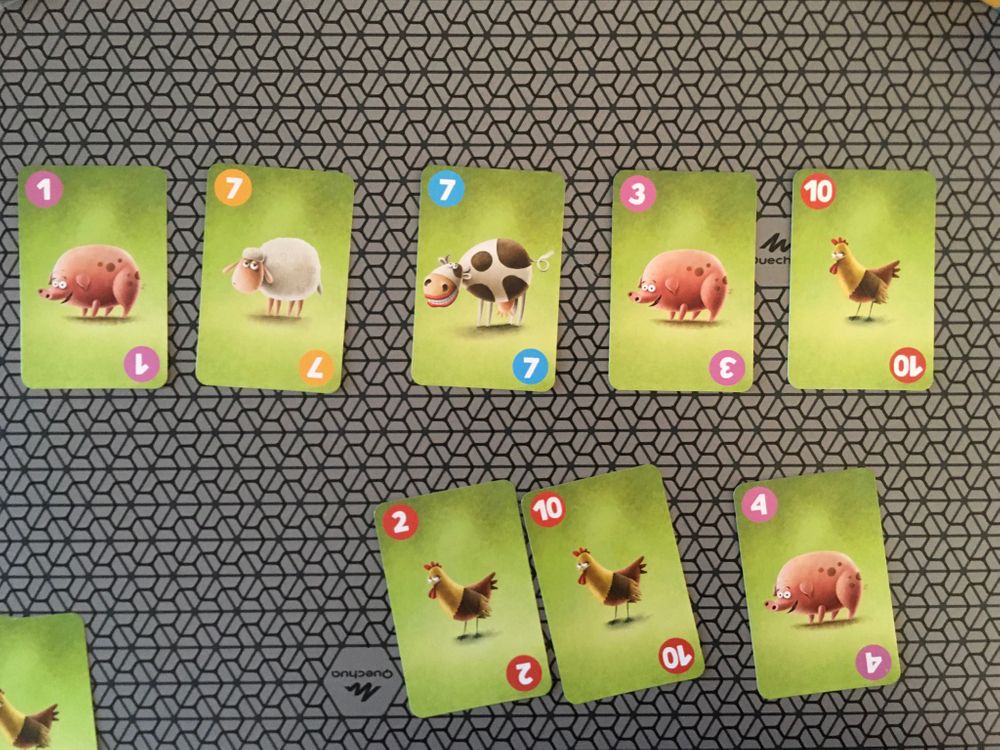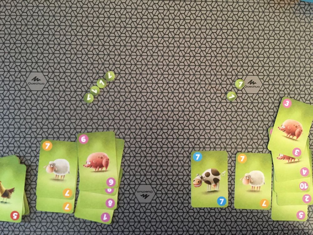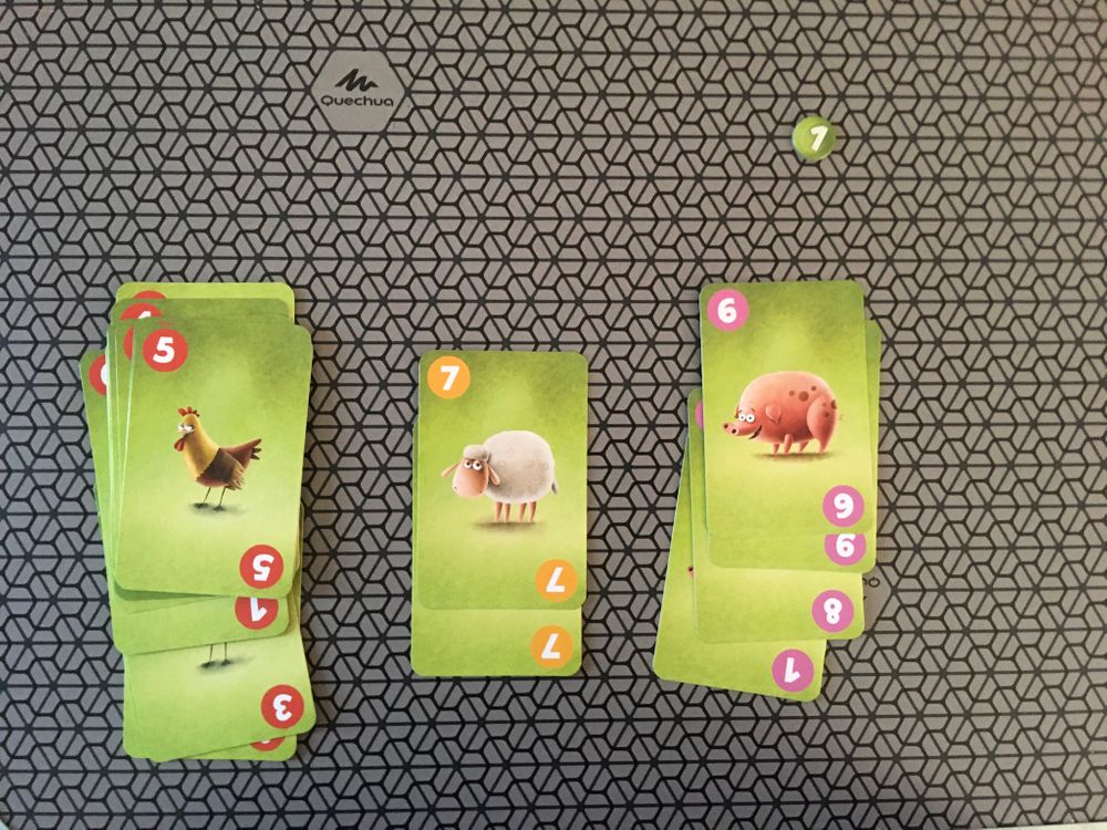 Вот и пригодилась мне карта с единицей. Выкладываю петуха со значением 8 и забираю свинью и овцу. 1+7=8. Карты откладываю в личную победную стопку.