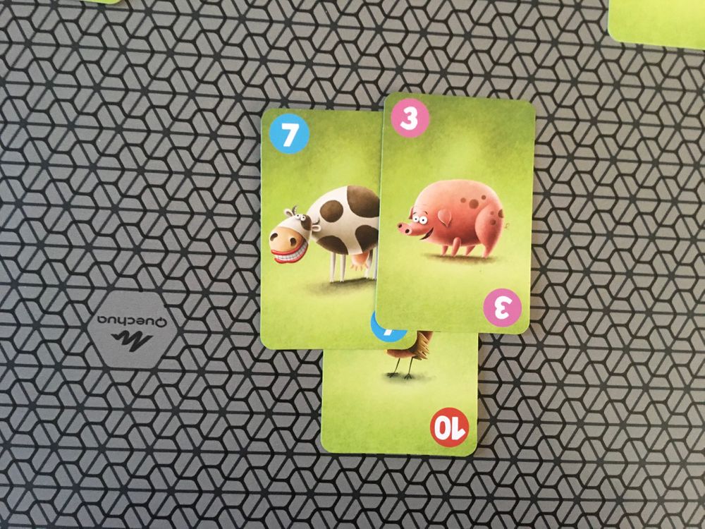 Он, походив картой петуха со значением 10, составляет решение: 7+3=10. Он берет карту свиньи с тройкой и теперь у него есть выбор взять овцу или корову со значением 7. Как Вы помните, корова является единственной картой, второй такой нет, поэтому игрок , конечно, берет себе корову.