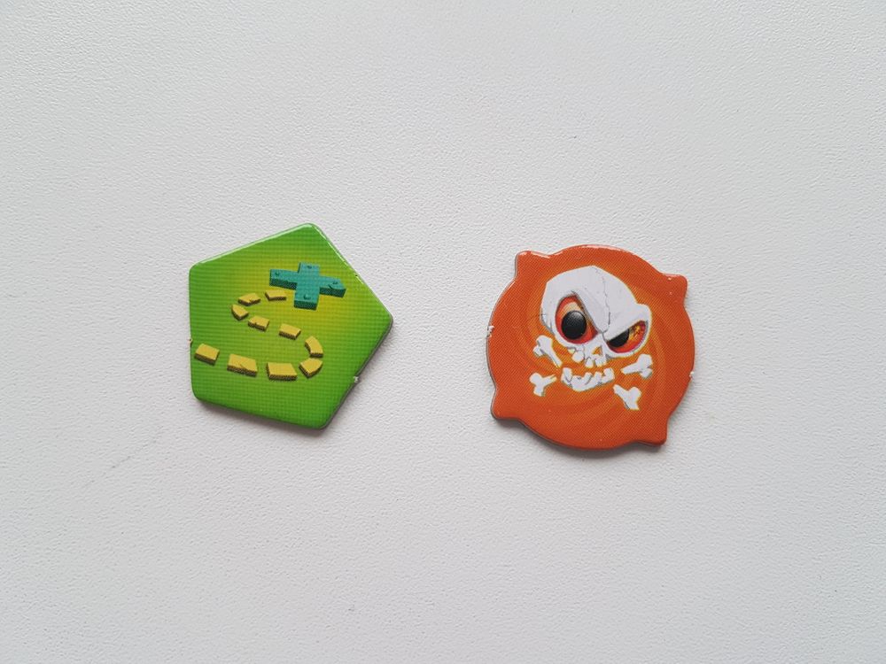 Есть пара новых жетонов бомб и молний, мы их смешали с базовыми и не убираем.