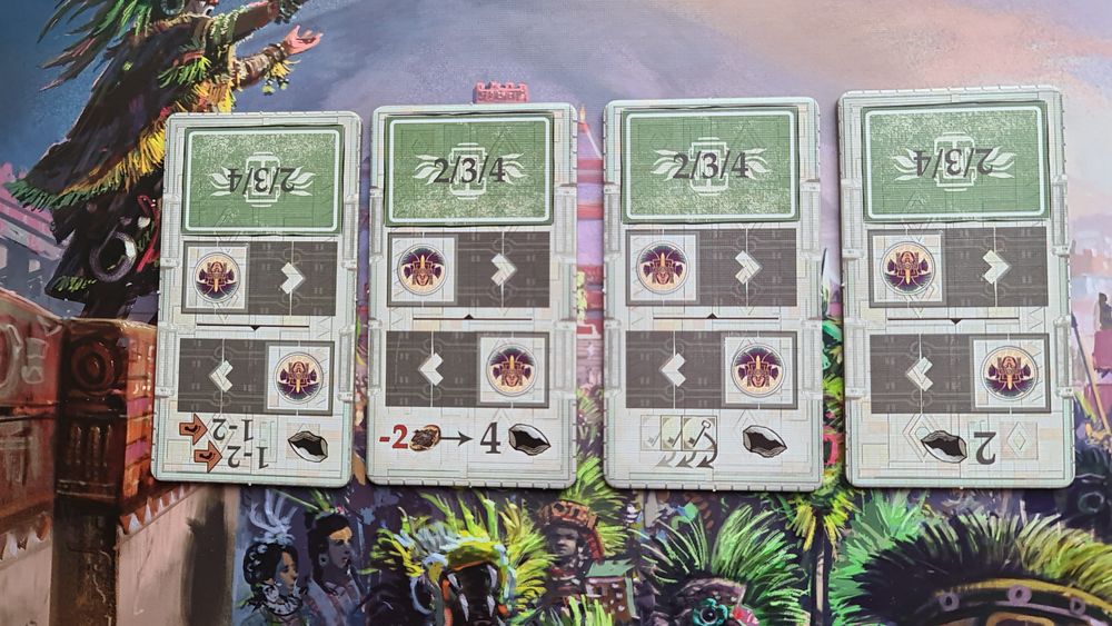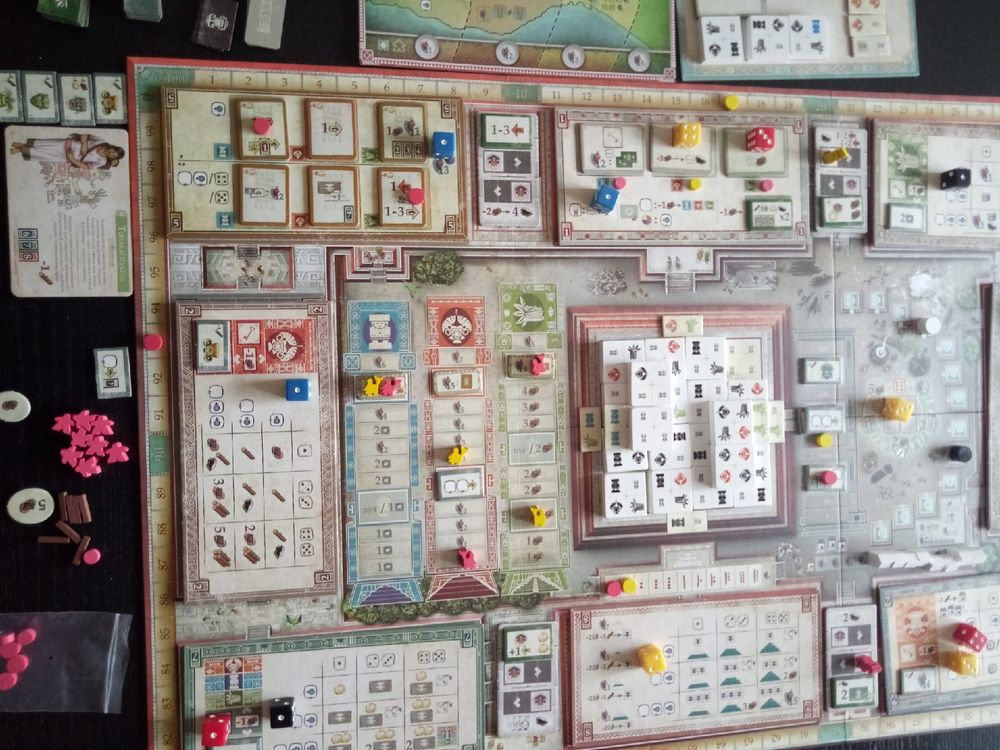 Казалось бы, добавилось столько нового, интересного. А игра то длиннее не стала. Всё не успеть. Надо выбирать. Выставление зданий усложнилось, при этом очков они стали приносить меньше. А маски больше. И получить их несложно. В итоге очень сильно повысилась ценность масочной стратегии, упростилось движение в храмах. А стратегия на зданиях требует намного больших усилий, чем раньше.