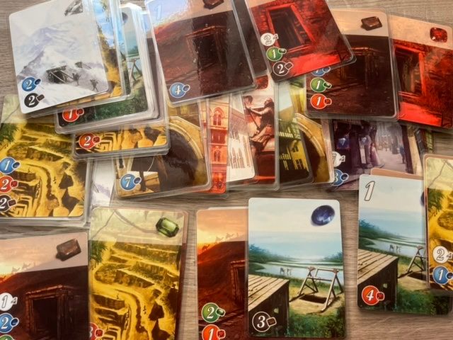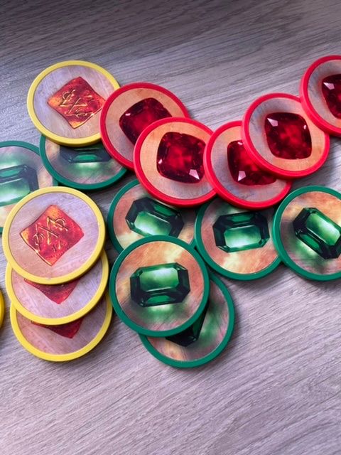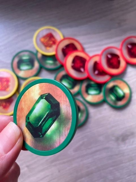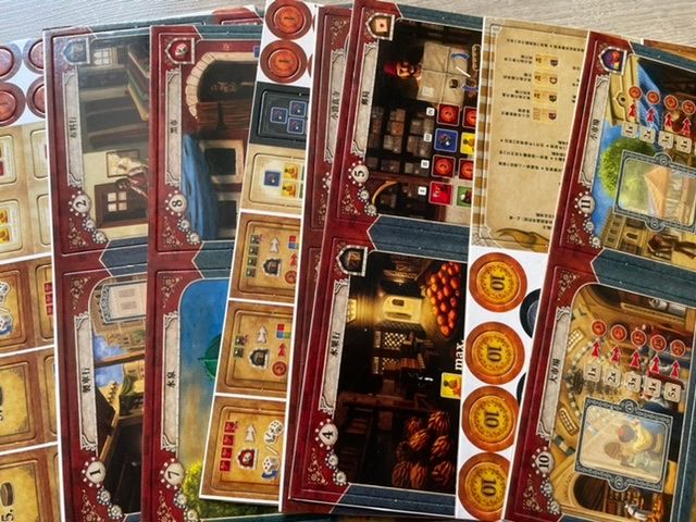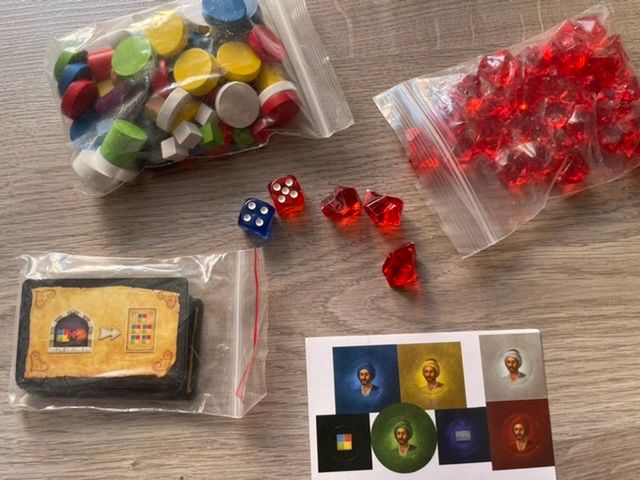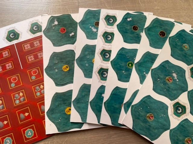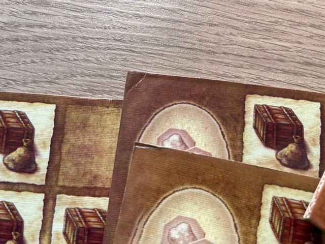 Коробка довольно большая, скорее всего размером под оригинал. Карты пришли заламинированными из-за чего с трудом входят в органайзер. Фишки пластиковые с наклеенным рисунком. На картах печать неплохая, но скорее всего бледнее, чем в оригинале. Брак не обнаружен. Инструкция и надписи на коробке на китайском.