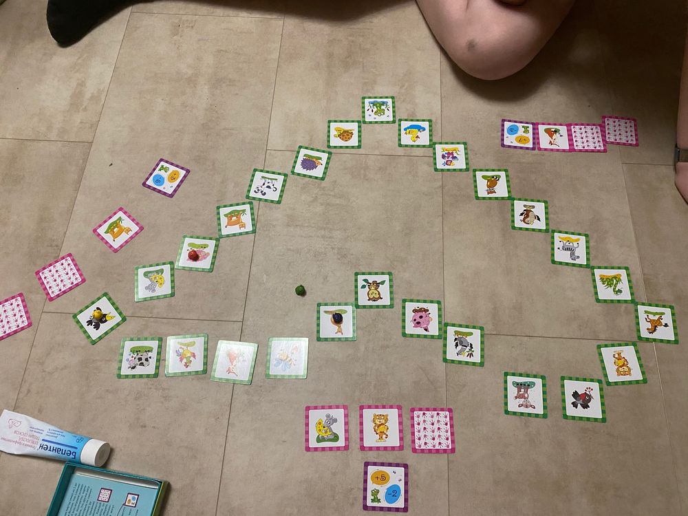 купила для игр с дочкой, уже месяца два играем, т.е ей было 2,4 тогда, ей понравилось, она конечно не может посчитать количество шагов, просто карточки берет, а я считаю и показываю, куда ставить, но играть ей интересно, каждый день почти играем. Маме понравилась игра, она такие простые игры любит) но мы пока только 1 вариант опробовали