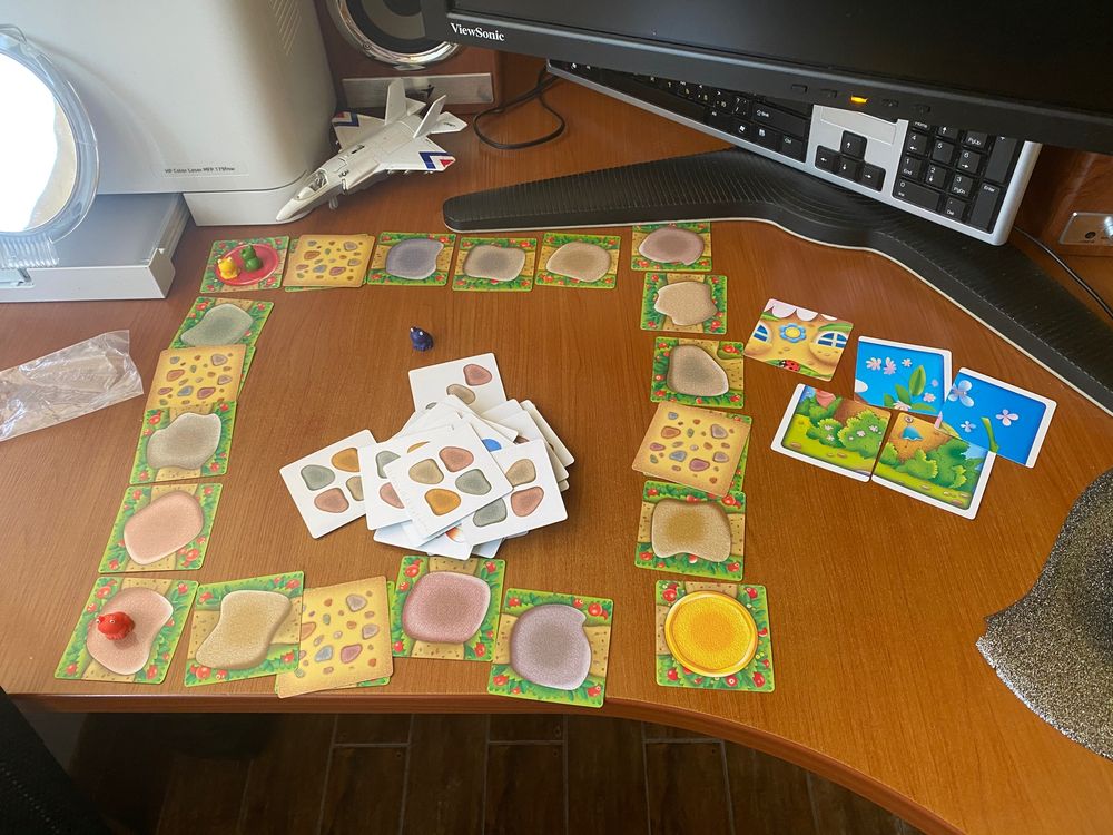 Морковкина, ты права, нужны изменения. Что бы посетить всех друзей (хотя мы выбрали только троих) нужно много раз проходить кругами вперед-назад. И младший сын быстро потерял интерес. А вот средние (12 и 10 лет) с удовольствием поиграли тк могут просчитывать на несколько ходов вперед. Вот думаю, а если выдавать не одну, а две карты прыжков?