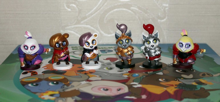 Алёна показывае результат покраски миниатюр к игре Мой маленький серп.