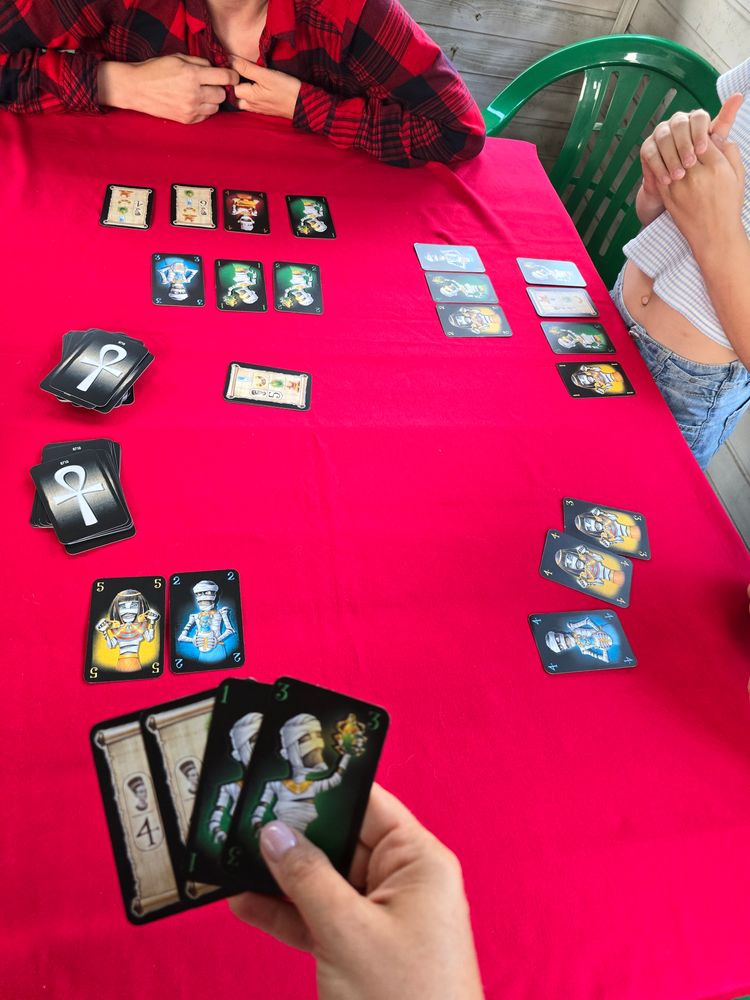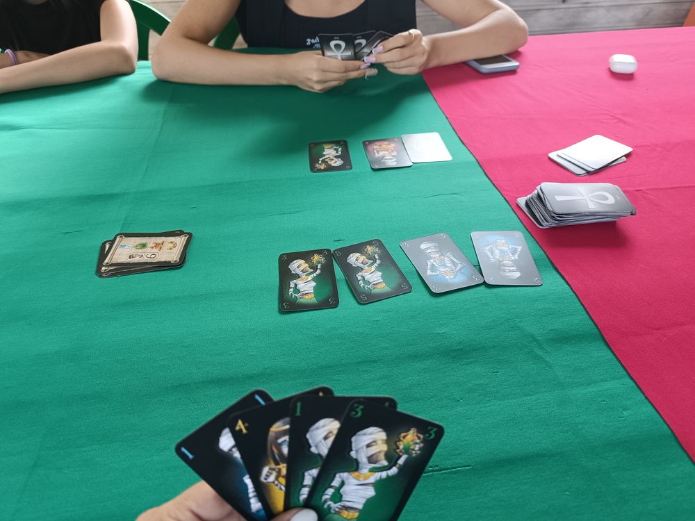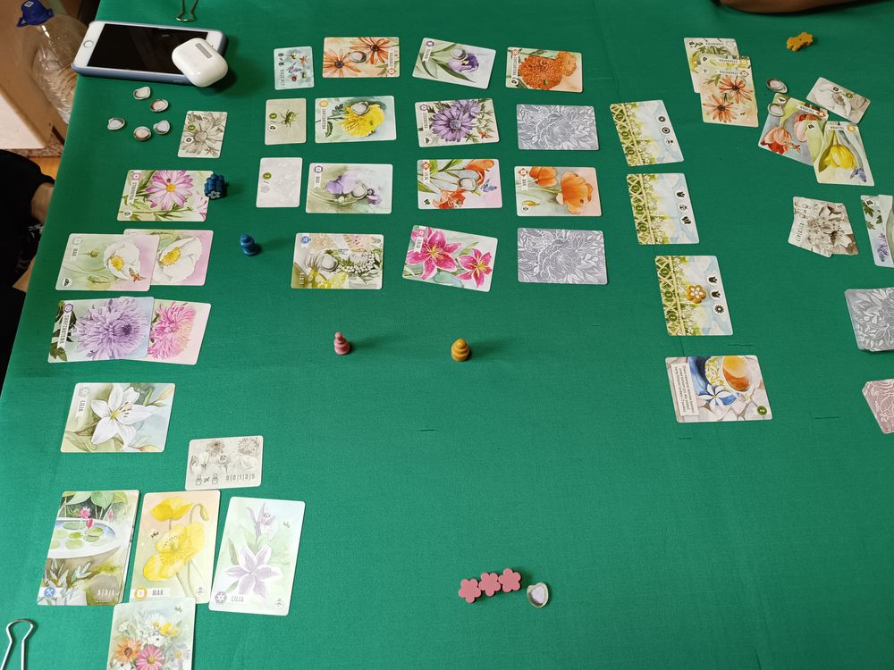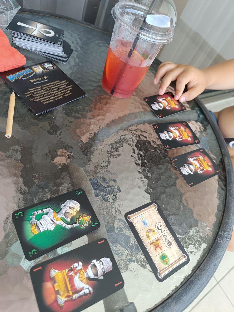 Играли в Мумии. В июле у нас с ней не получилось вдвоём сыграть в более сложные игры. Но зато поиграли втроём: я, сын, наша соседка. И тоже в новинки: Флоуфероуз и Кодекс природы.