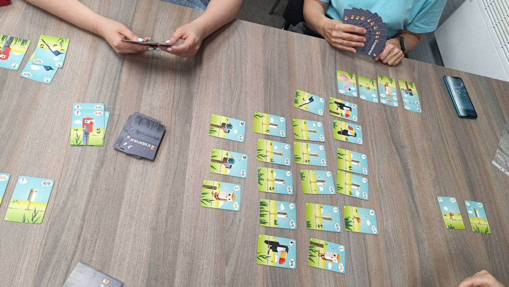 Тоже игра хороша на разные составы. Но вот вшестером у нас в какой-то момент на руках и в колоде было очень много лис. Я даже подумала, что можем не успеть собрать всю еду из-за того, что лисы съедят всю птицу. Но нет, лисы не успели натворить бед😁