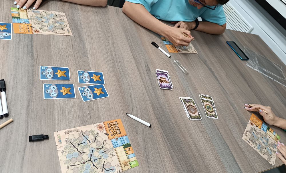 Ещё были партии на троих: я, подружка сына и её мама. Семья играющая. Но количество игр, конечно, не как у нас. Вот они и попросили у меня на время несколько коробочек, чтобы разнообразить свои игровые посиделки).