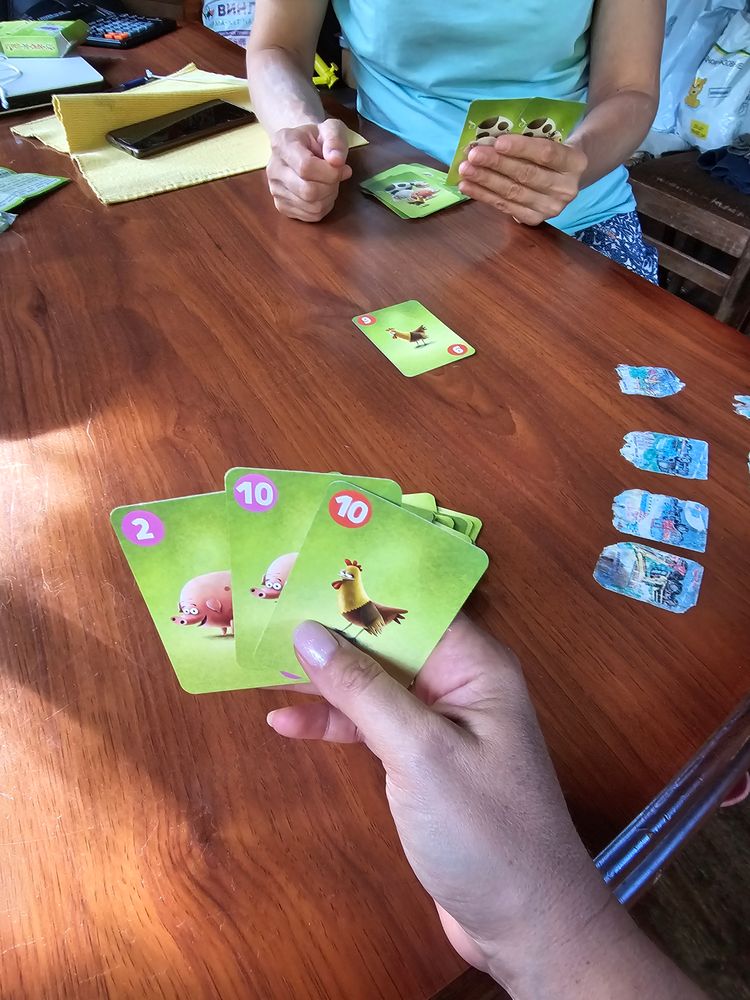Очень давно хотела попробовать. Оказалось, что коробочка есть у подруги. С ней мы игру и разложили. Всё таки Десять свинок на счёт мне нравятся больше!