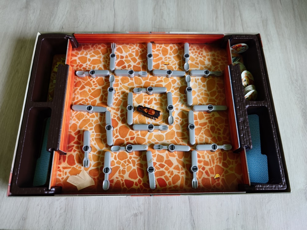 Затем ко мне подошел 8-летний мальчик и спросил, а есть ли у нас ещё "активные настольные игры?" Он, оказывается, любит только такие, где сильно думать не надо. Ну что ж, моторика тоже полезна. Я вспомнила про Верблюда в пустыне, тоже веселенькая. Есть сейчас похожие игры с картошкой, вроде пират в бочке тоже,про космос тоже видела. Футбол дуэльный от бондибон. Лежала коробка с Айс класс, но дети её не захотели.
