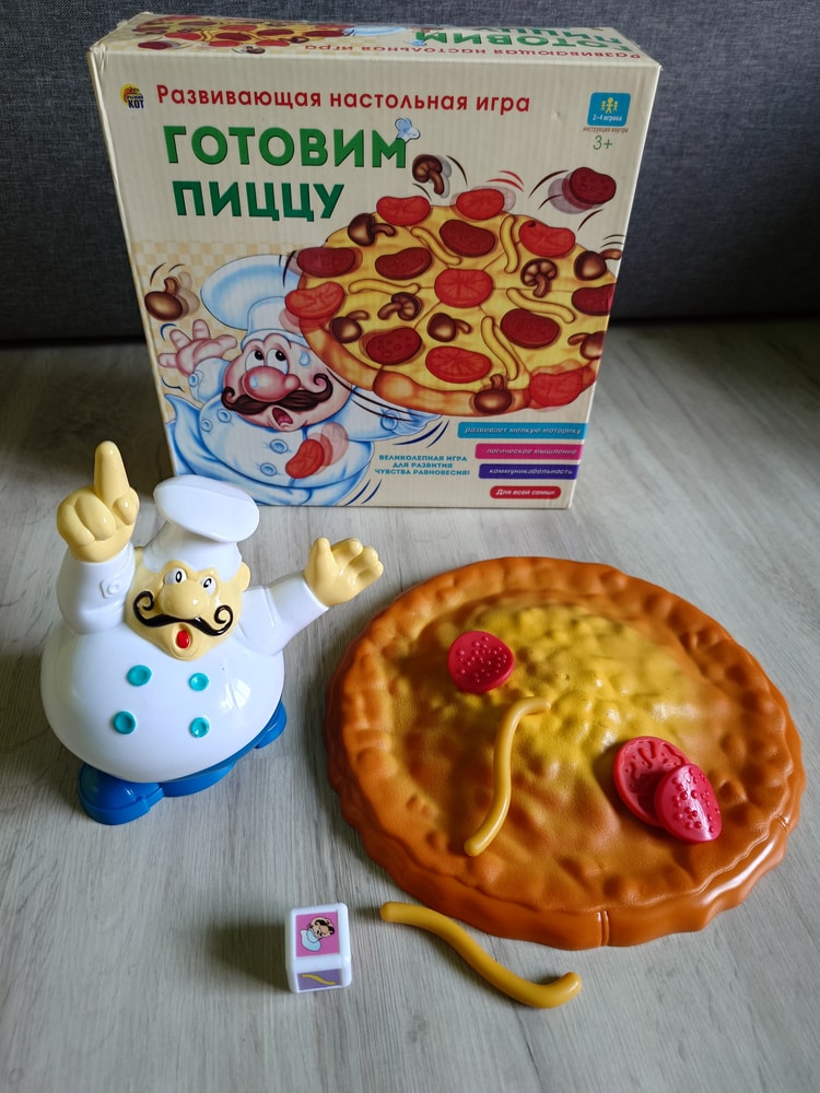 Очень детям понравились Очки наоборот, они играли по карточкам из игры и потом строили какие-то дорожки из подушек в зале и бегали в этих очках. Сын принес балансир повара с пиццей, так себе игрушка,я её не люблю, сын обожает.