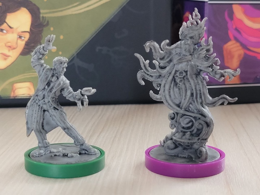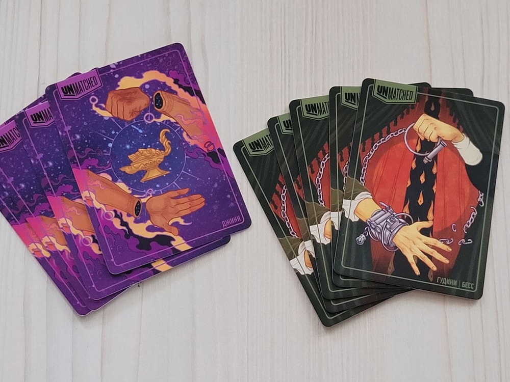 Мой соперник в Unmatched это сын (почти 9-ти лет), он любит эту серию также, как и я, или даже больше. Поэтому выбирая новую коробку, я остановилась на той, героев которой он знает - джинн известен по сказкам, а про фокусника Гудини сын слышал, так как сам увлекается фокусами, учится и удивляет нас то с картами, то с монетками.