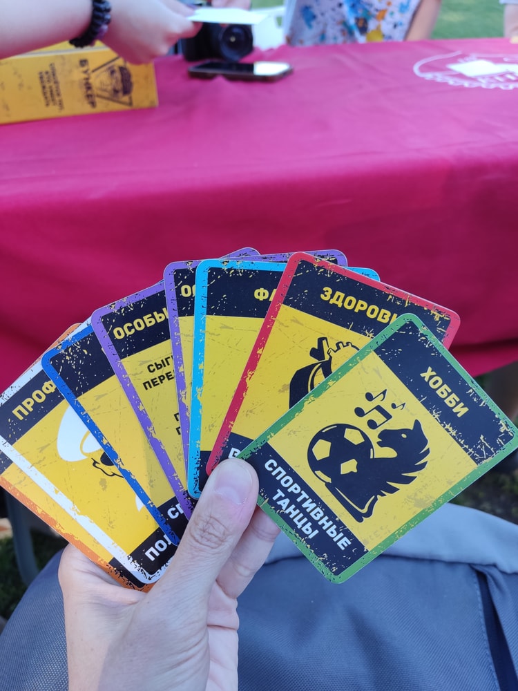 А потом игромастер предложил игру "Бункер". Я, как поняла, что это игра, в которой надо говорить, убеждать, блефовать, так сразу захотела убежать со стола, но сын так весело играл за другим столом в уно, а мне так снова не хотелось стоять в сторонке на этом празднике игр...