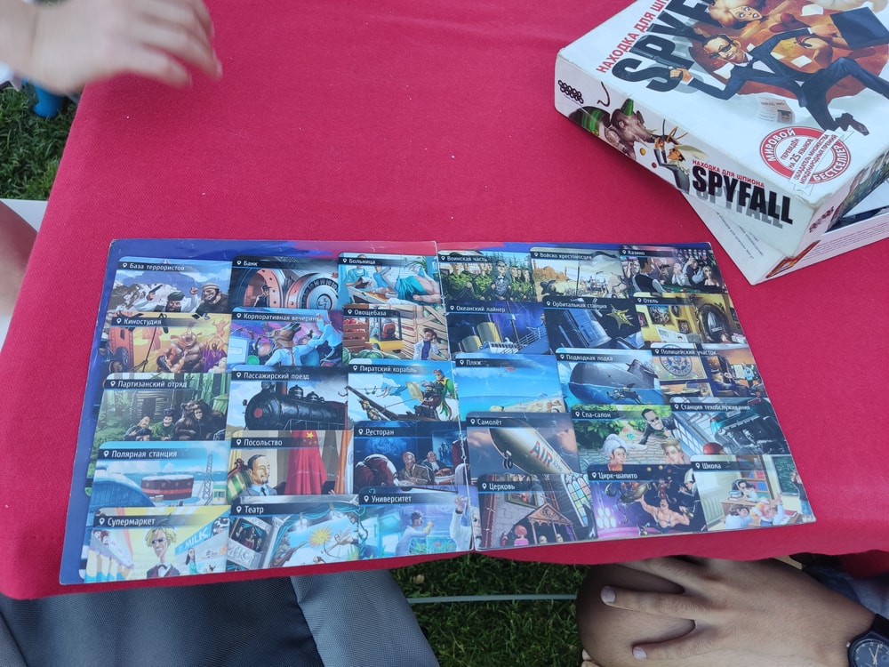 Затем мы вчетвером играли в"Находку шпиона". Все игроки получают по одной карте - троим достаются локации, а одному карта шпиона. Задавая друг другу вопросы, шпион должен вычислить локацию, а те, у кого локации, должны понять, кто шпион. В первой партии я была шпионом, но я изначально не поняла, что у троих локация одна и та же, думала, что мне нужно вычислить три разные локации.