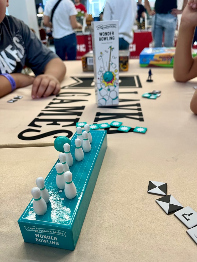 Дальше решили поиграть во что-то легкое и веселое и выбрали Wonder bowling . Попали в точку 🔥 кегли выставляются в любом порядке на коробку-поле. Каждому игроку дается по 4 карточки целей - 2 со страйком(должна остаться 1 кегля в конце твоего хода), 2 с цифрой (сколько кегль должно остаться на поле в конце твоего хода ). Затем каждый по очереди ударяет специальной палочкой по коробке в надежде сбить нужное количество кегль . Задел по кегле - получи штраф ( еще одну цель) , не сбил ни одной кегли - штраф, сбил все - штраф, если штрафы закончились , а ты должен его получить - выбываешь 😜кто первый выполнит все свои цели побеждает . Очень весело , дочка прекрасно справилась . Буду искать игру на просторах интернета .