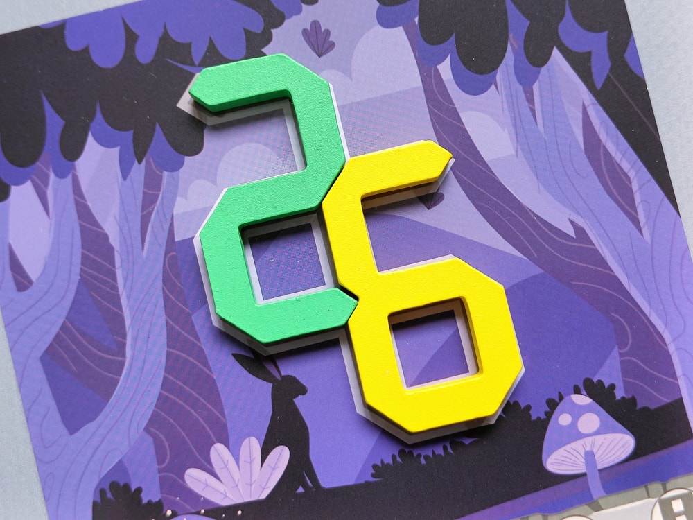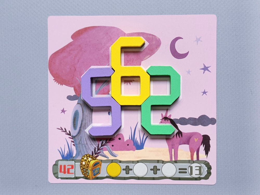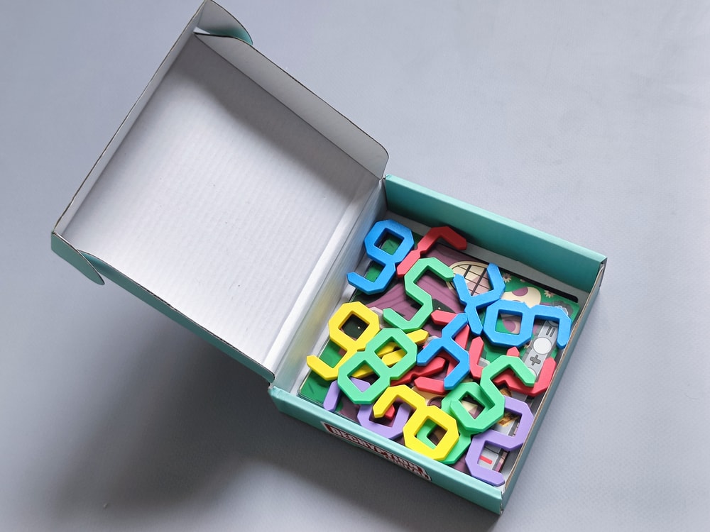 Каждое число представлено в двух экземплярах. Помимо этого цифры имеют цвет (это важно для выполнения некоторых заданий): один цвет на два разных числа. Издатель не обозначил какого цвета пары двойки-пятерки и шестерки-девятки. Это немного усложнит задачу прохождения головоломки.