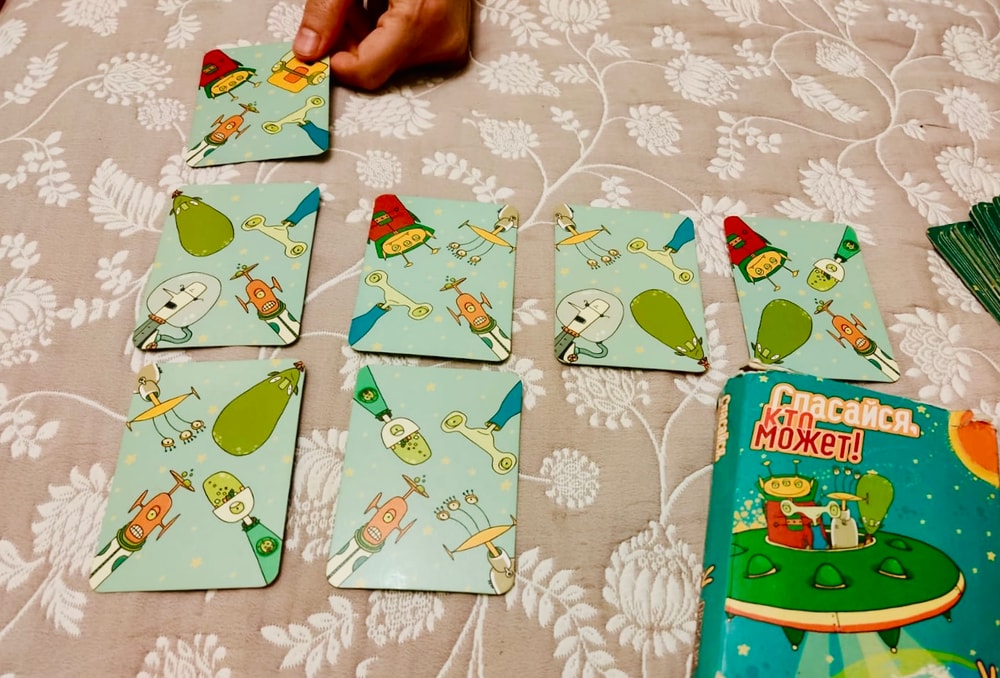 Эту игру Мириам показала мне уже за полночь, и на удивление на поздний час, я очень быстро решила первое испытание, вычислив всех 4 пришельцев. Подумав, что если первая партия совсем не сложной для меня, наверняка каждая партия будет так же даваться на раз два.;)Ну каково же было мое удивление, когда во второй раз открывая очередную карту подсказку, она не приводила меня к цели, а наоборот уводила в более глубокие размышления;) Игра покорила меня, своим логическими размышлениями ( я очень люблю задачи и головоломки такого уровня).