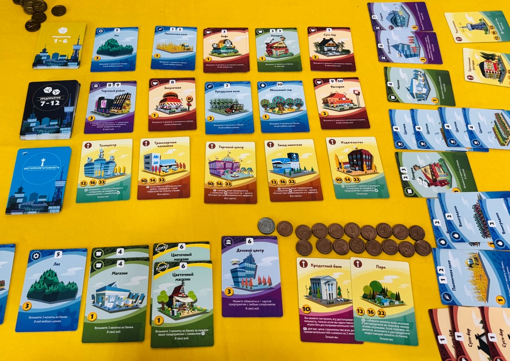 Игра интуитивна проста и понятна : Бросаешь кубики, получаешь монетки, строишь новые « предприятия»… Но за этой простотой скрывается определенный расчет и тактика получения большего дохода.