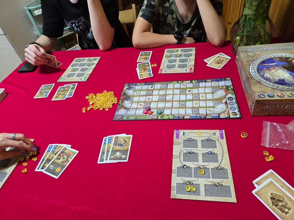 Придворные мне очень понравились ещё после игротек. Поэтому и попросила себе на день рождения. Артифициум не сдают позиций с начала июня! Ну а Совпадение- быстро и весело, что ещё надо в 12 ночи😄.