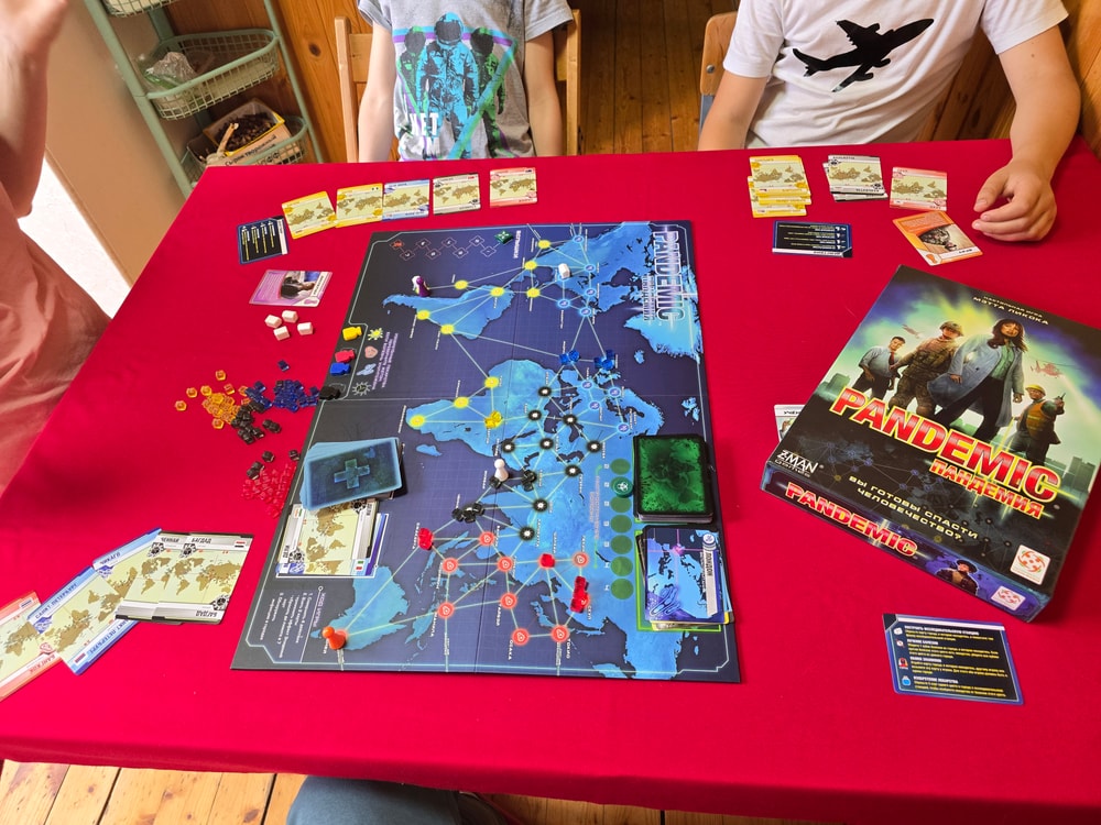 А ещё была эпическая партия в Пандемию. Я забыла, что игроки проигрывают, когда заканчиваются карты игроков. Мы их перемешали и продолжили играть. А ещё упустила момент, что когда изобретены все лекарства, игроки выиграли и игра закончена. В общем, мы мучительно долго спасали мир от вируса🤣. Пока я в правила не заглянула...
