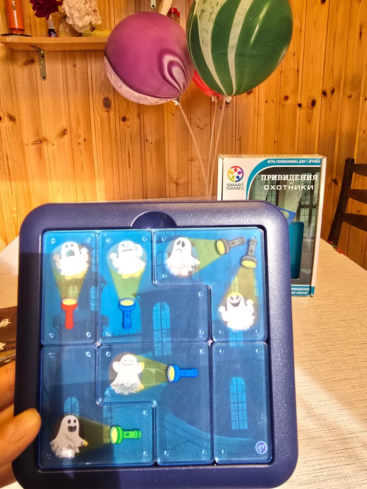 Следующая головоломочка: за один присест прошла до 45 уровня Привидения и охотники. У нас всего 10 головоломок. Все выбирались очень тщательно. Все очень простые, я не фанат головоломок, но считаю, что несколько штук должно быть у настольщика. Мало ли, вот начну марафон проходить, а тут раз- и головоломочки есть🙃