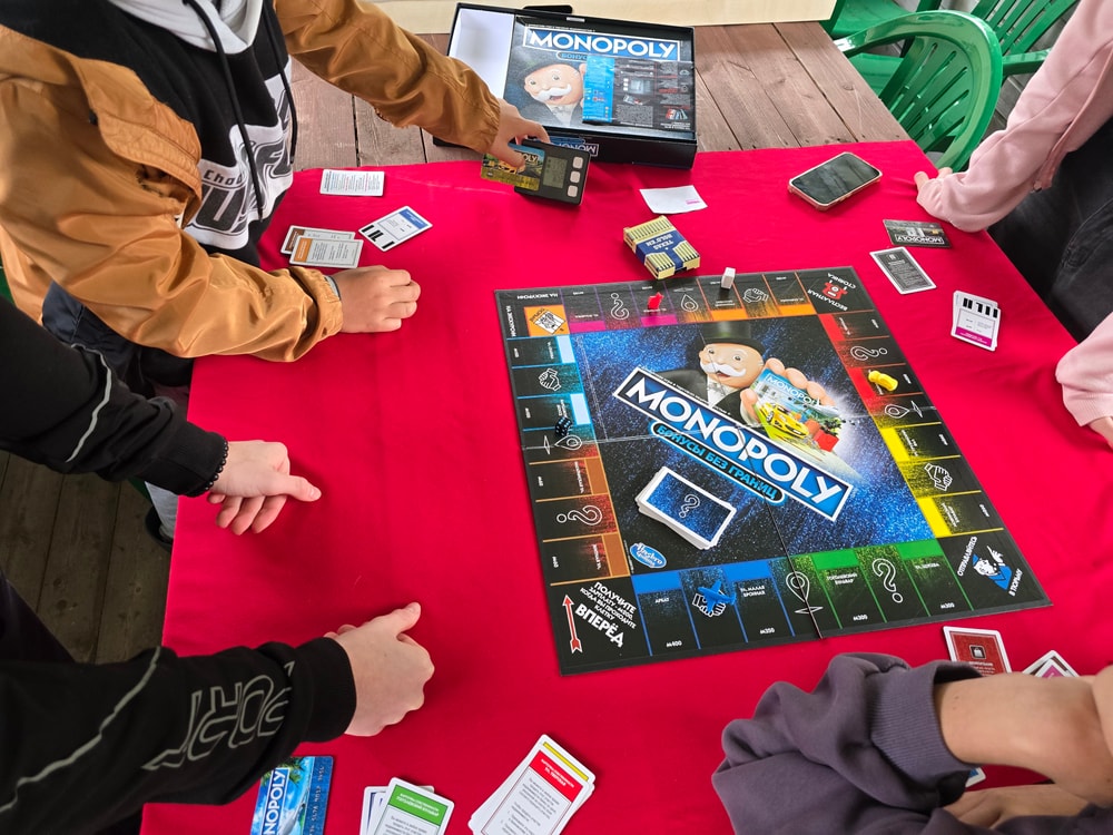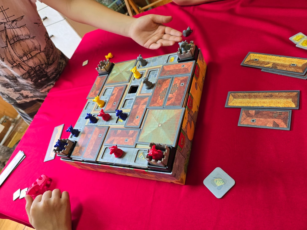 Когда за столом 9 детей-игруль, играть можно бесконечно 😆. Но маме тоже нужен отдых. В следующие дни пребывания у нас крестника (крестница рано уехала) дети (сын, крестник, девочки-соседки) практически постоянно играли одни. Вот что я им предложила: Магический лабиринт, Монополия с банкоматом, Борщ изба медведь свин блин, Слоноловкость, Слоны-пираты, Карак, Дабл-слинг,
