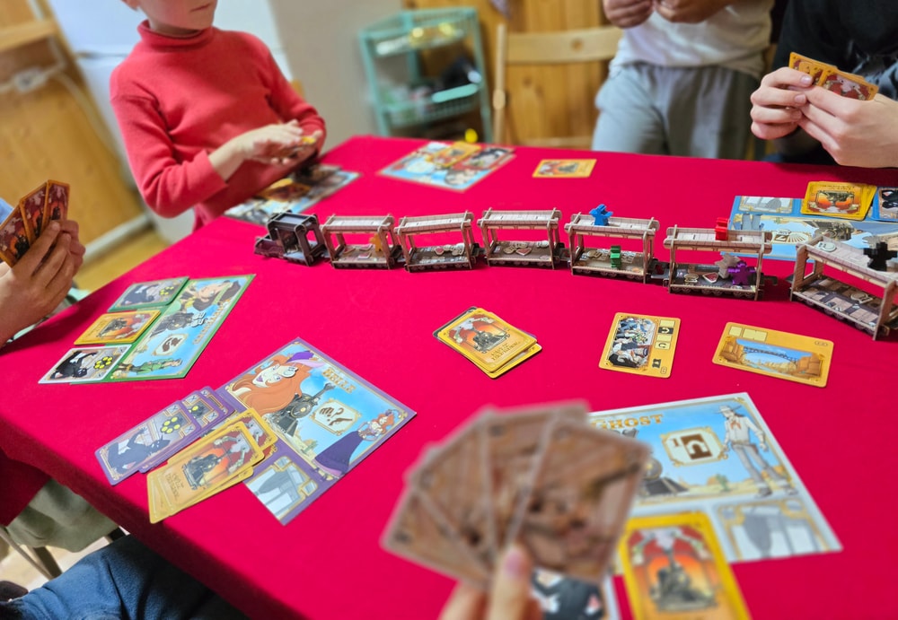 Итак, вернёмся к играм с крестником. Он сам вспомнил про Лабораторию. Ещё максимальным составом играли в Грибные места и Кольт-экспресс.