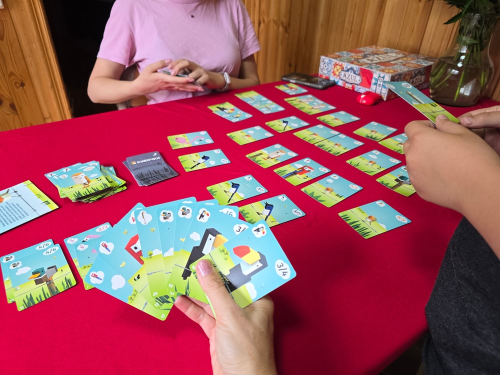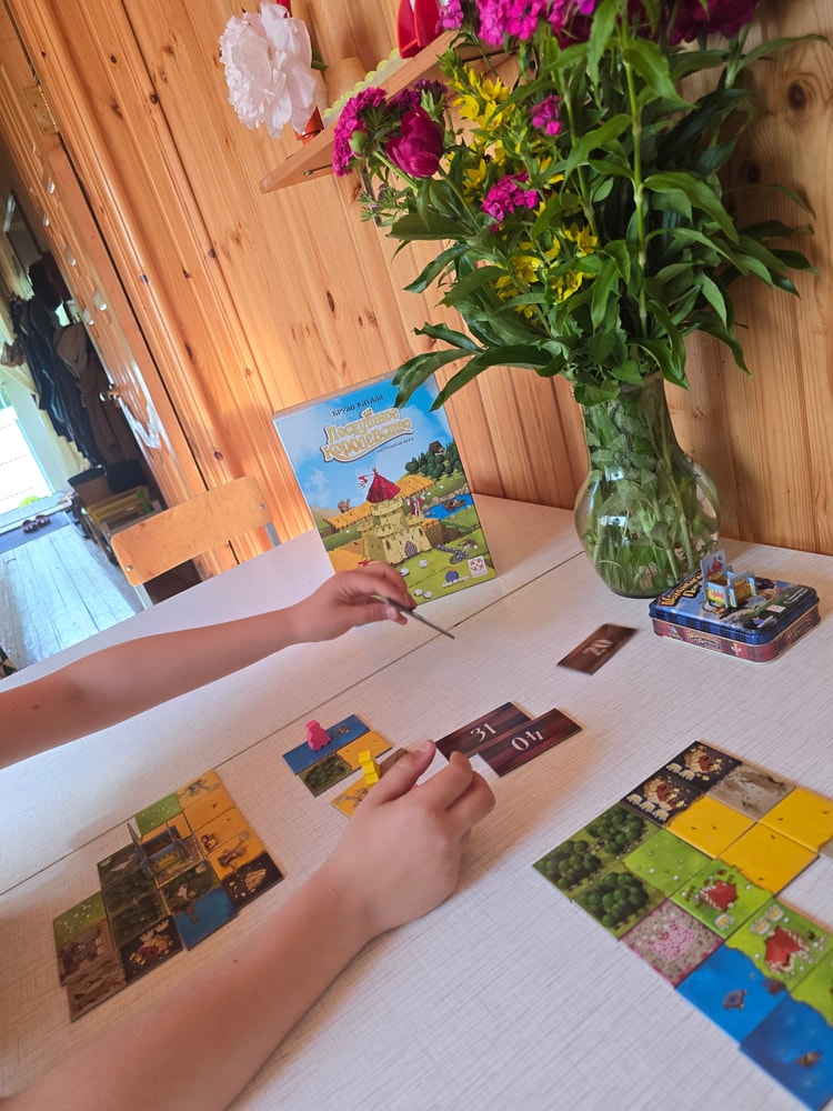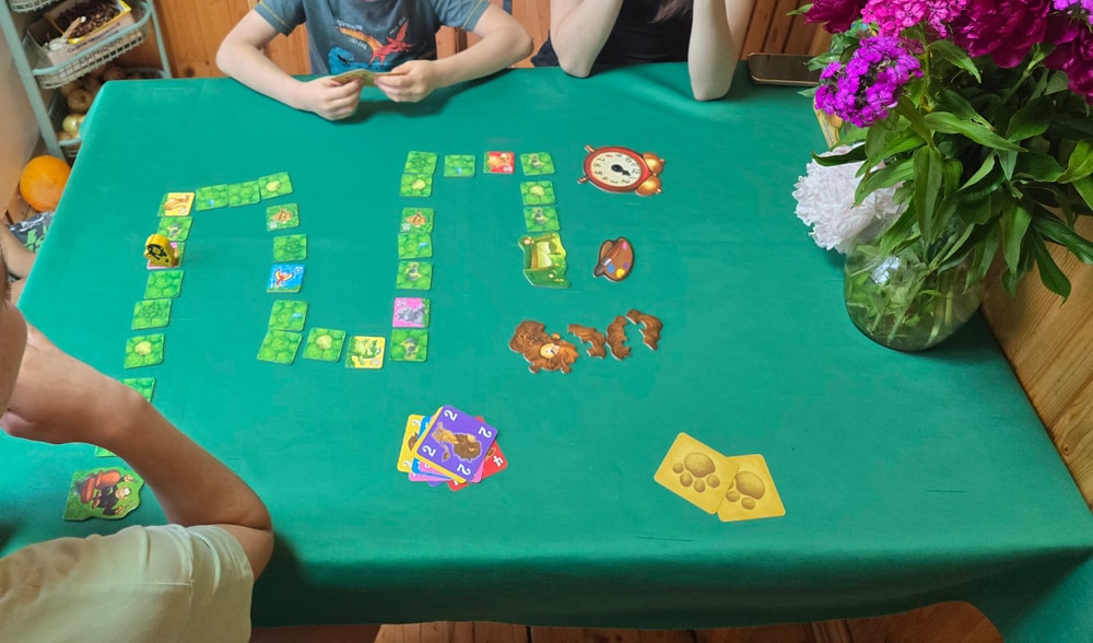 Когда гости разъехались, начались обычные игровые будни для нас и наших напарников-соседей. Каждый день я приносила новые коробочки. На столе оказались более простые игры. Марафон то надо проходить)))) Вы же помните, я решила за летний период переиграть во все игры, которые хранятся на даче💪😁?