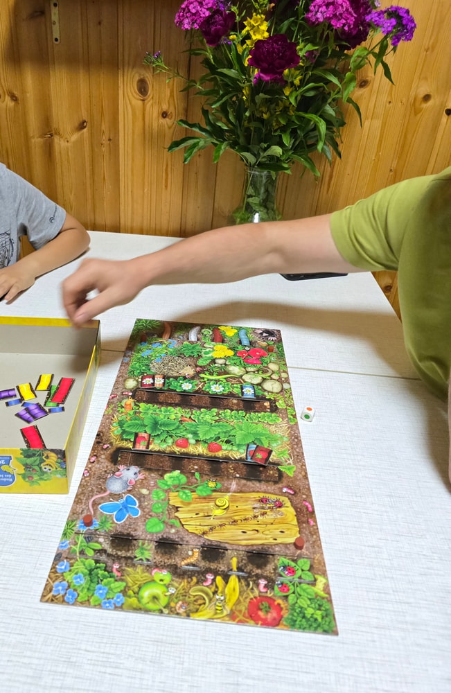 Муж тоже помог в марафоне. Не смог отказать нам в паре партий в Червячки-огородники.