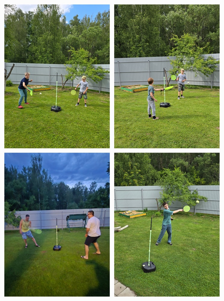 Настольный теннис. У нас набор, который можно присоединить к любому столу. Когда мы в городе, ходим играть в парк. Муж предлагал купить теннисный стол на дачу, но я не хочу. Уж лучше набор для стрельбы из лука😁