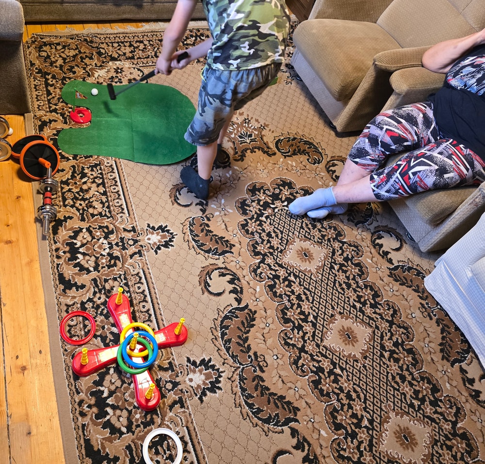 На случай плохой погоды у нас есть более спокойные игры: Твистер, Кольцеброс, Гольф, Бильярд.