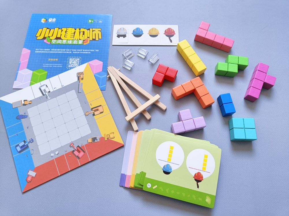 В ее составе поле, 9 фигур, мольберт, 4 фигурки инженеров и 50 карточек с заданиями.