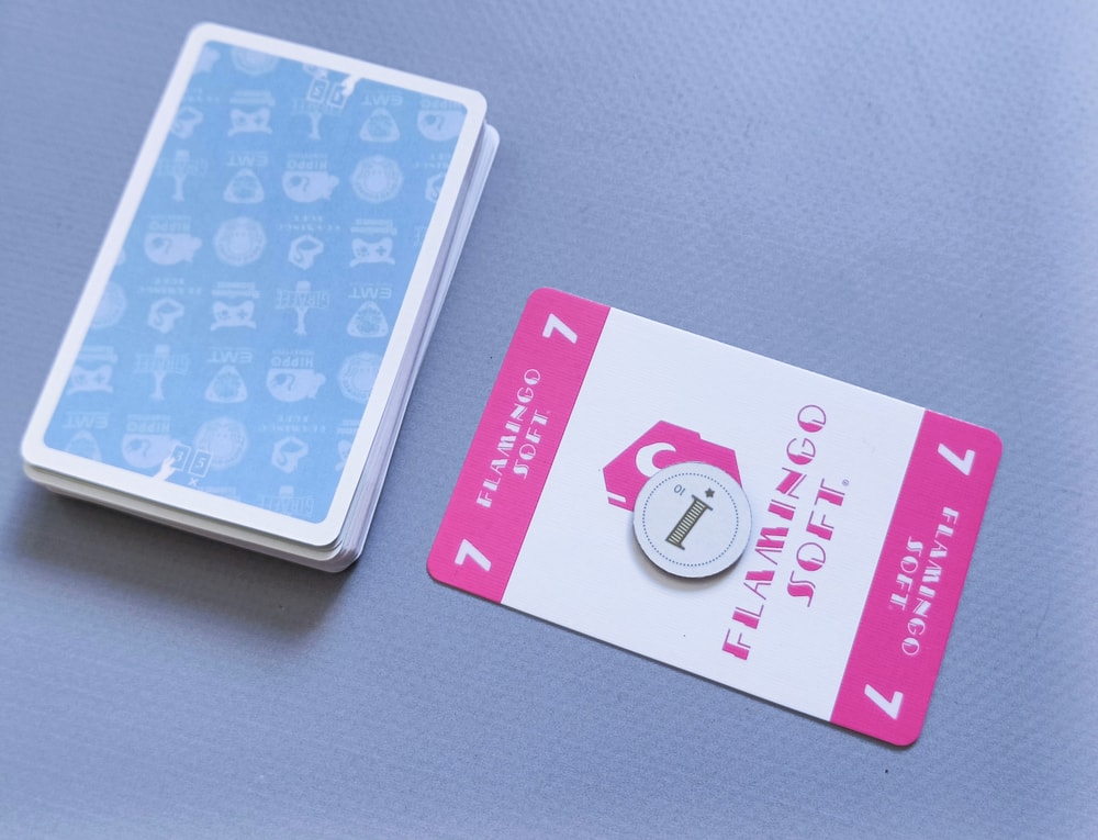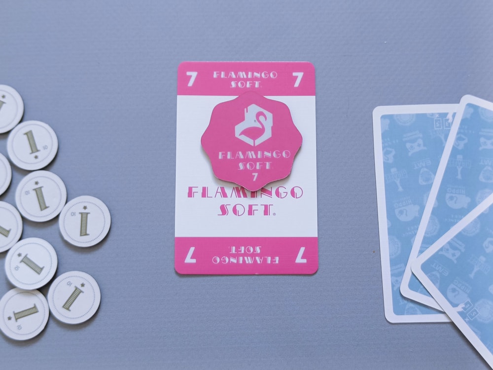 Второй игрок тянет карту из колоды (рынок все еще пуст), а затем играет карту на рынок. Он играет карту компании Flamingo Soft.