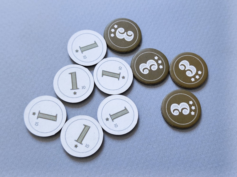 А теперь важный момент! Когда игроки расплачиваются с соперниками, то отдавая монетки, переворачивают их обратной стороной. Так, получая две монетки, игрок зарабатывает не 2 ПО, а 6 ПО.
