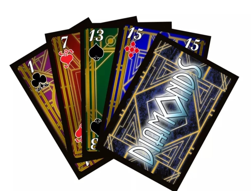 Для игры до 4х человек подойдет классическая карточная колода 52 листа и нужны объекты (маркеры, пуговицы, денежки), которые будут выполнять роль бриллиантов. Для игры большим составом тоже можно попробовать ее использовать, но придется раздавать меньше карт и добавить число раундов. Понадобятся стаканчики или ширмы в качестве хранилищ сокровищ. Вот как бы выглядело содержимое оригинальной коробочки: