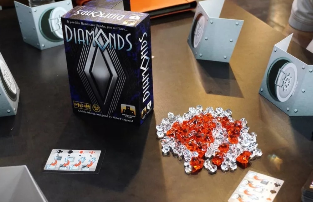 Оригинальная же игра Бриллианты для 2-6 игроков 8+, сын в 7,5 лет с правилами разобрался – осталось только не лениться карты по мастям перед игрой расставлять, чтоб в них не путаться. Игра отлично играется на 3-4 человека, мне кажется, это оптимальный состав игроков.