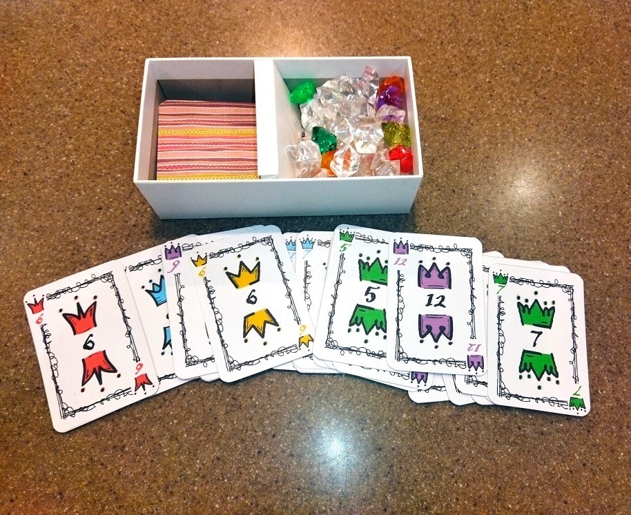 И вот пока мои коробочки едут, мы играем в игру «Бриллианты» (Diamonds) – набиваем свои королевские кладовые бриллиантами, а «королевские» потому, что играем мы картами игры Пять корон «моего редизайна», о нем писала давно тут: https://www.babyblog.ru/user/id1846359/1091441.Там же выложены картинки для распечатки карт, вдруг кто себе такие захочет.