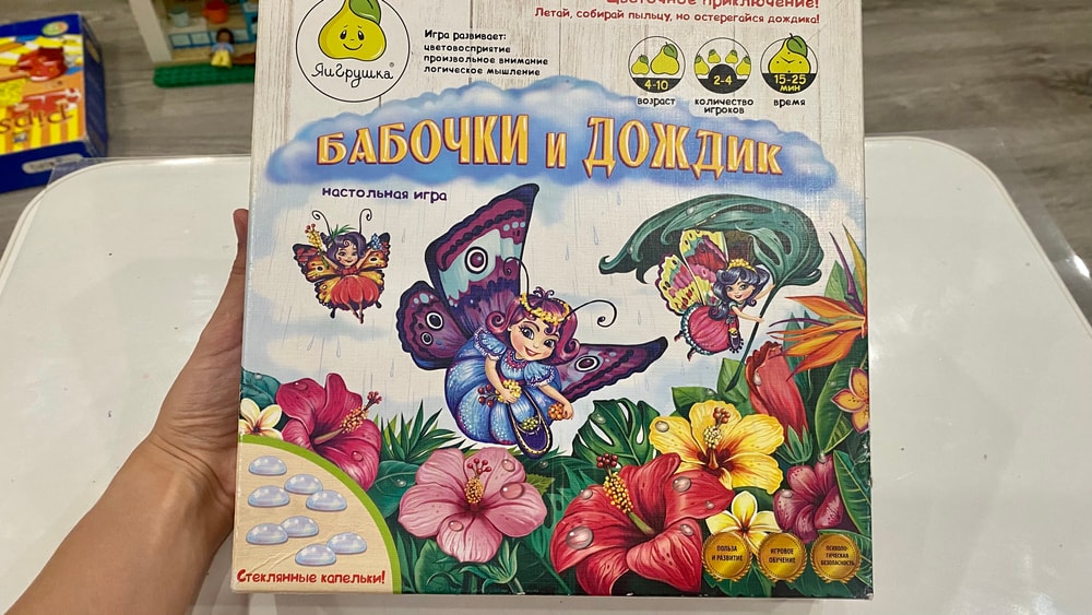 игры для малышей (дошкольников)Сегодня расскажу про нашу новую настолку — «Бабочки и дождик» от ЯиГрушка. Коробка манила яркостью и обещанием «развить логику и внимание» у моей 3-летней дочки. Что вышло на деле?
