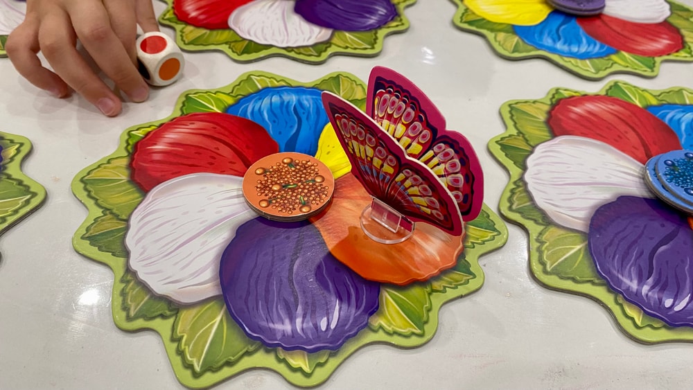 2. Ставишь бабочку — забираешь жетон пыльцы, если он там есть.