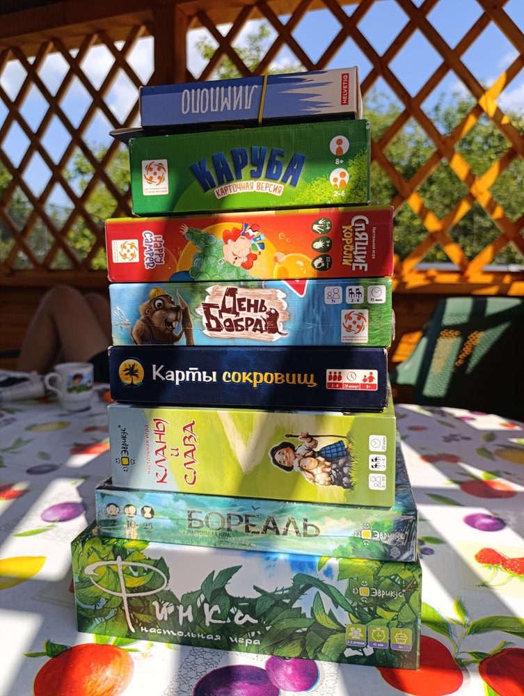 Игровые дневникиБыл вынужденный перерыв в играх. Теперь понемногу играем на даче. Сюда взяла то, что было не открыто на момент отъезда и что редко, а точнее больше года не доставали дома(небольшие коробочки).