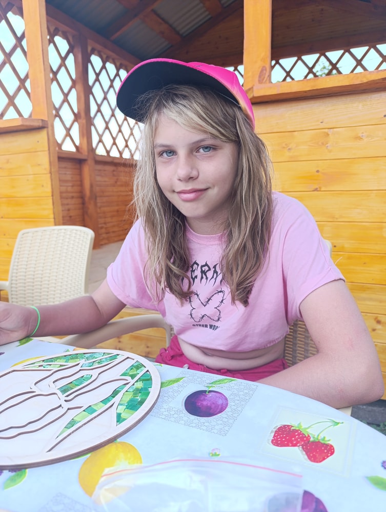 Дети начали мозаику из стеклышек. Одну закончили и две еще в процессе.