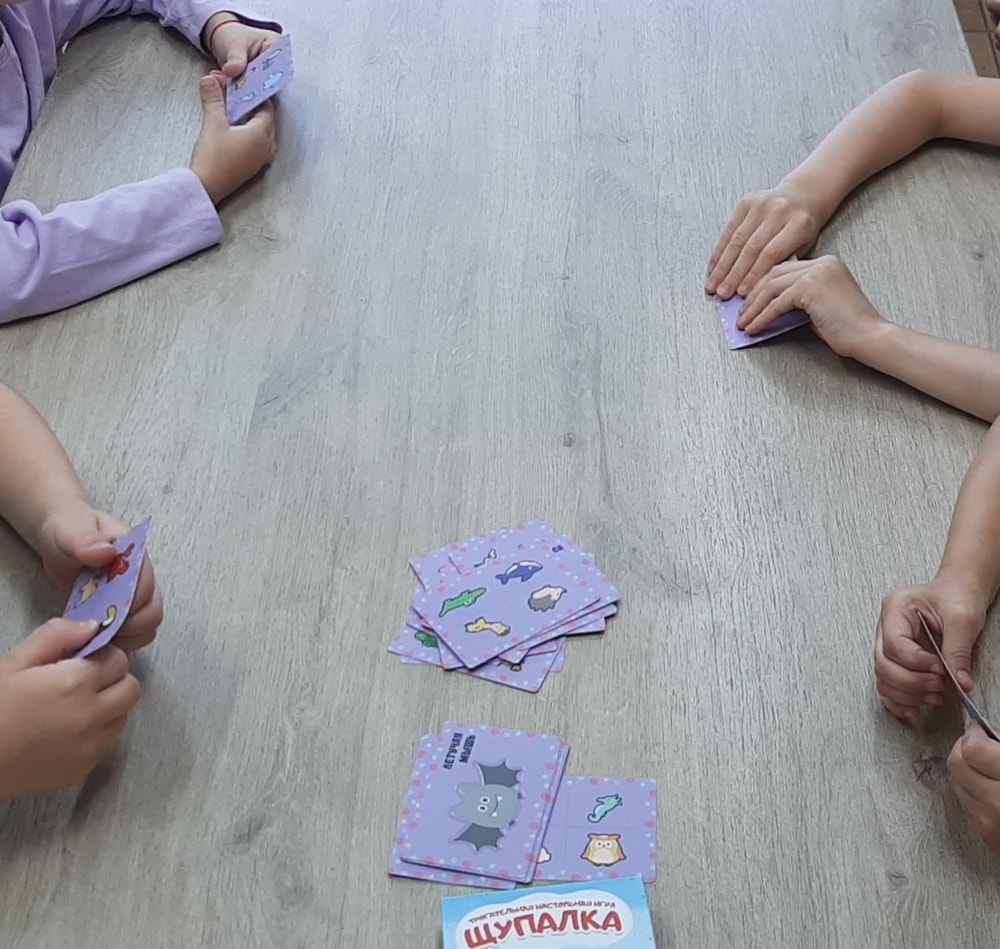 На игротеках на скорость мы не играем, потому что дети в панике, а фактор скорости всегда добавляет нервозности, и дети просто начинают играть в угадайку. В этой игре важно сконцентрироваться, сосредоточиться на ощущениях и пространственных представлениях. Потому что нужно не просто нащупать, но и определить положение в пространстве: широкая линия сверху или снизу, вся фигура вытянута в ширину или в высоту, что то похожее на рог прощупывается справа или слева?