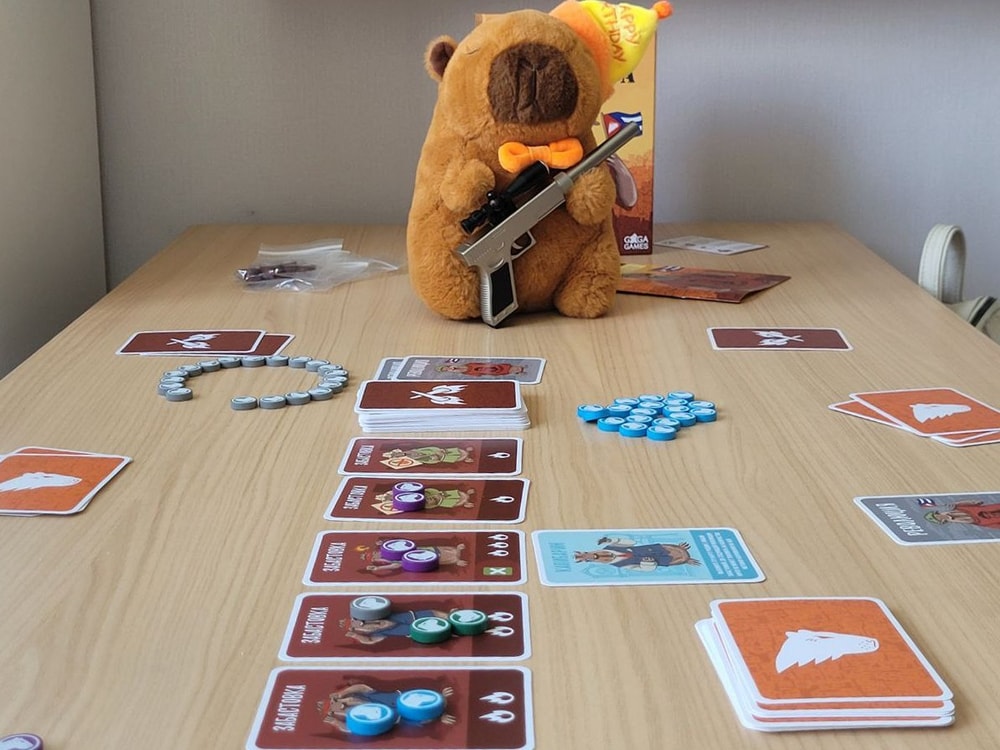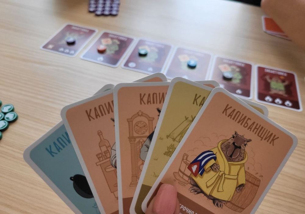Но, конечно же, никто добровольно не станет выкладывать свои жетоны, чтобы получить потом штрафы. Все игроки с помощью карт с капибарами (капибаринами, капибаржами, капибардами, капибанщиками и прочими капи...) выкладывают чужие жетоны и убирают\перемещают свои, чтобы подставить под штрафы других игроков.