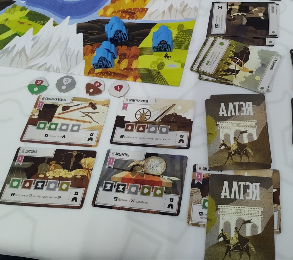 В этой игре соединены сразу несколько механик: колодострой, ареаконтроль, изобретение технологий и строительство чудес.