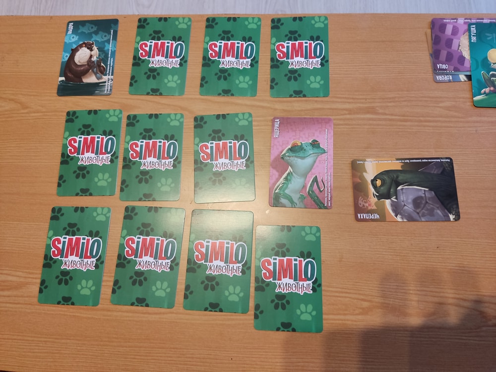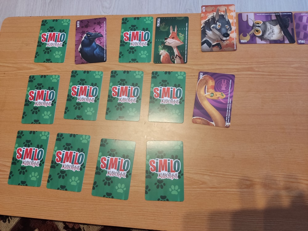 2. Решила я в середине августа посмотреть и пофотографировать свои залежи, чтобы иметь представление ЧТО и где лежит. И обнаружила полную коллекцию Симило. Меня ни разу не заинтересовала эта игра, когда о ней писали здесь, думала, одноразовая игрушка. А потом случились скидки в детском мире, когда одна коробочка стоила 200 с копейками рублей. Ну и чего же мелочиться?! Я взяла, конечно, все и закинула в контейнер. Взяла в руки "Животных", прочитала правила и решила, что неплохая игра на дедукцию, мы такое любим.