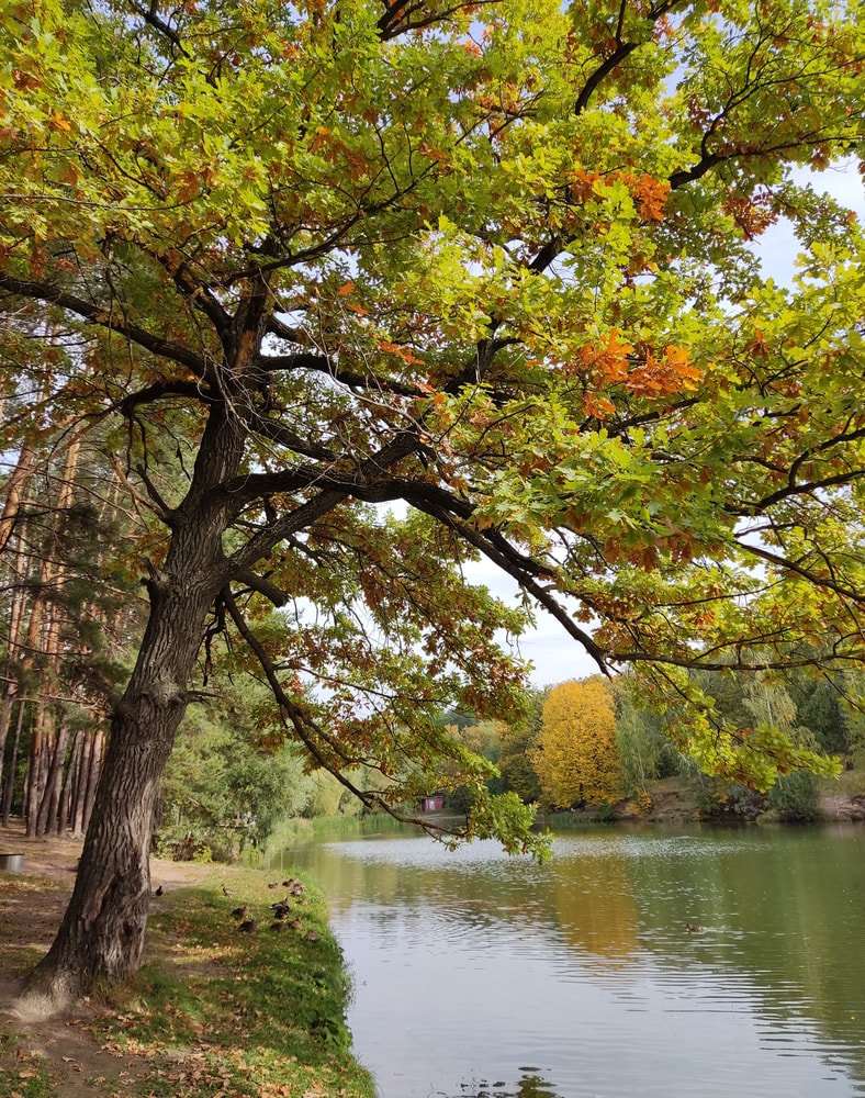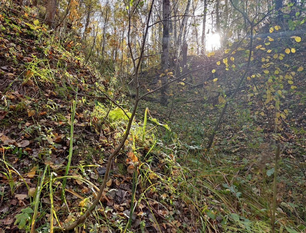 А тут мы уже вдвоём накрыли землю листьями, но сын победил по количеству орешков.