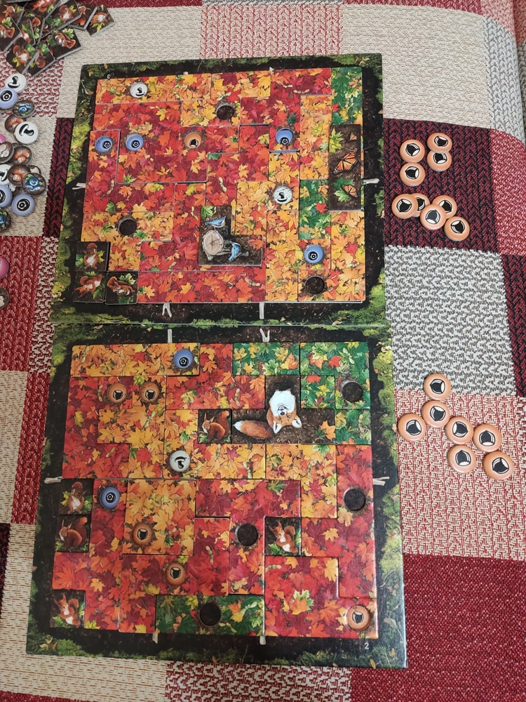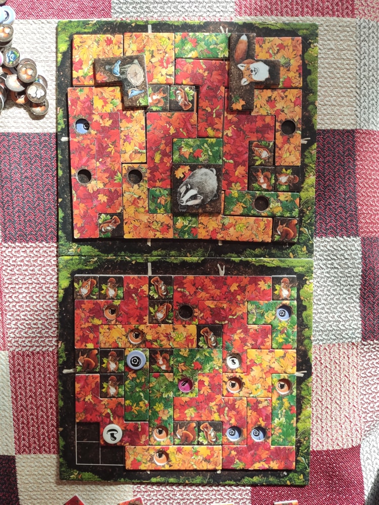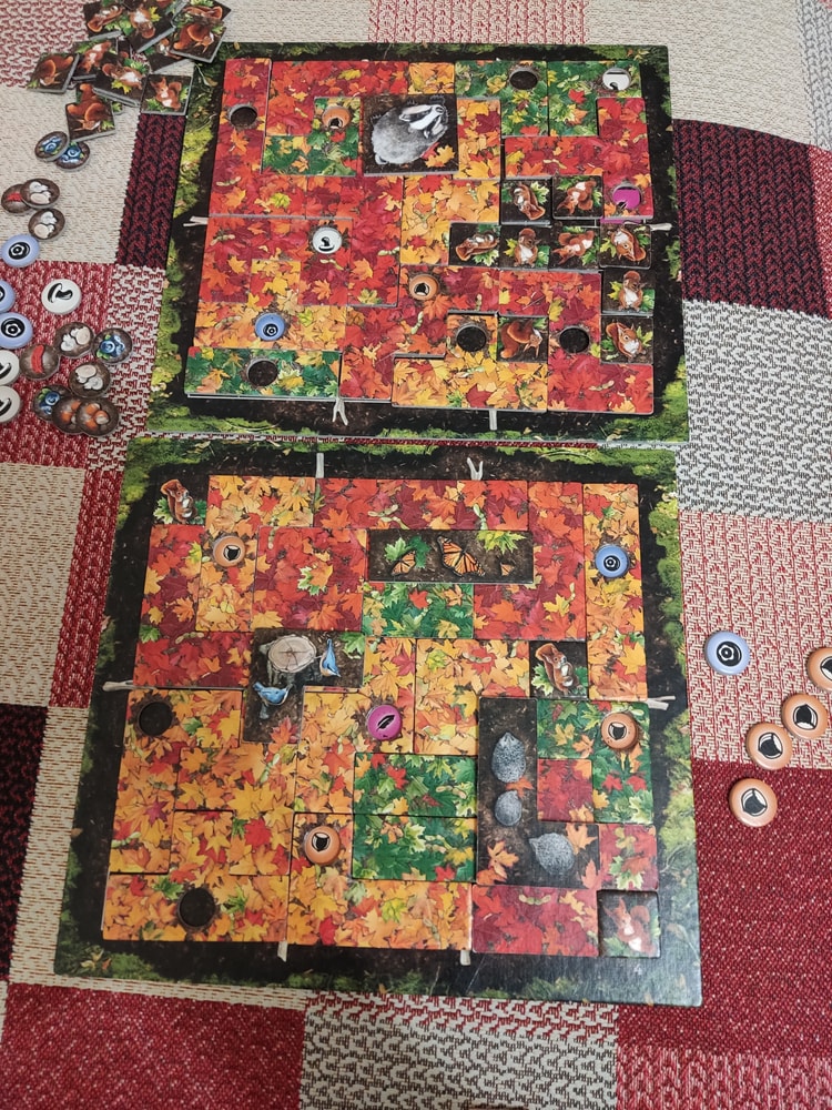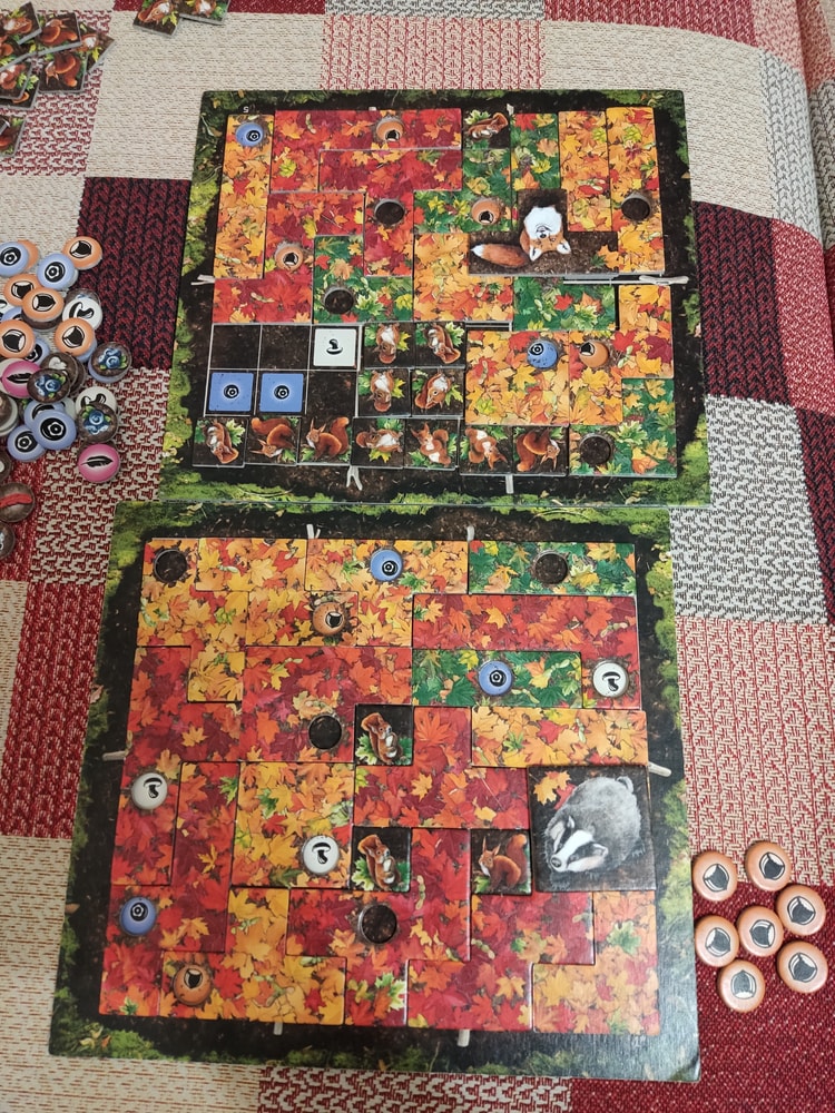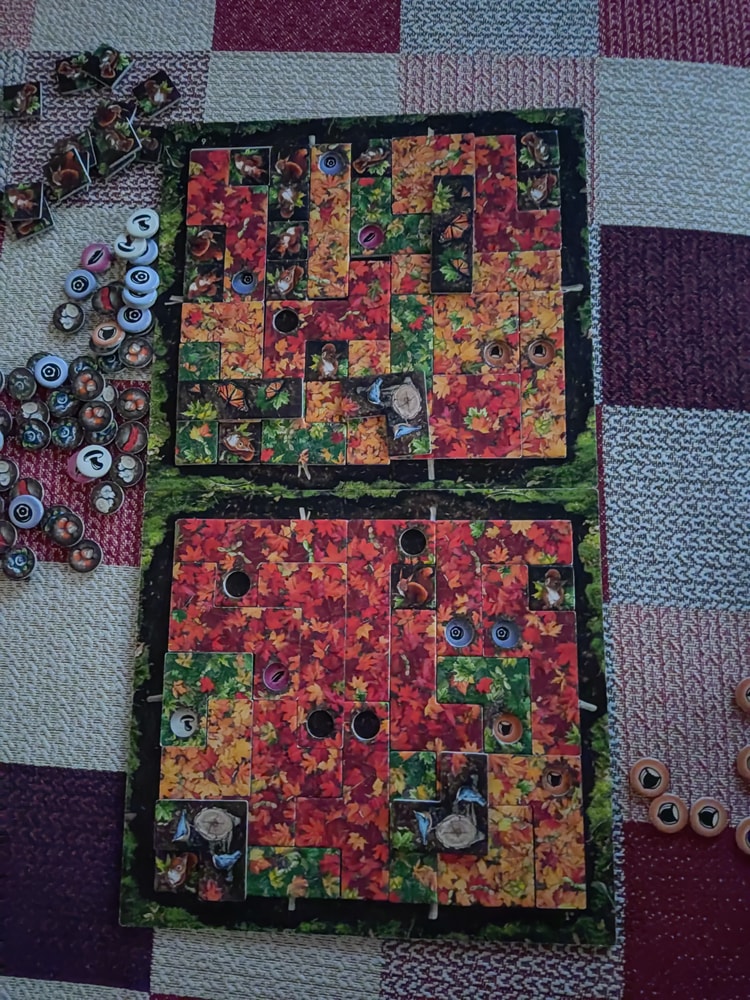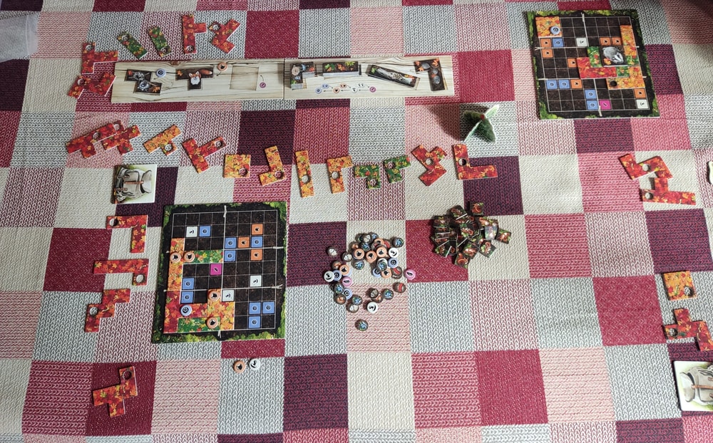 Мы сыграли 9 партий. Игра привела нас в восторг - очень красивая и атмосферная 🍁🍁🍁🍁 А цель игры какая замечательная - ЗАПОЛНИТЬ планшет полностью! Это то, чего мне так не хватало в Пэчворк! И ты наслаждаешься каждой деталью и в ход соперника примеряешь детали в разные места, чтобы найти самое выгодное положение.