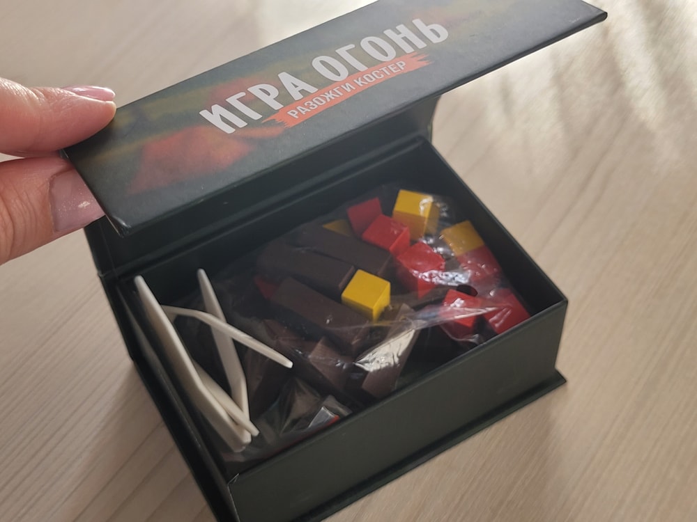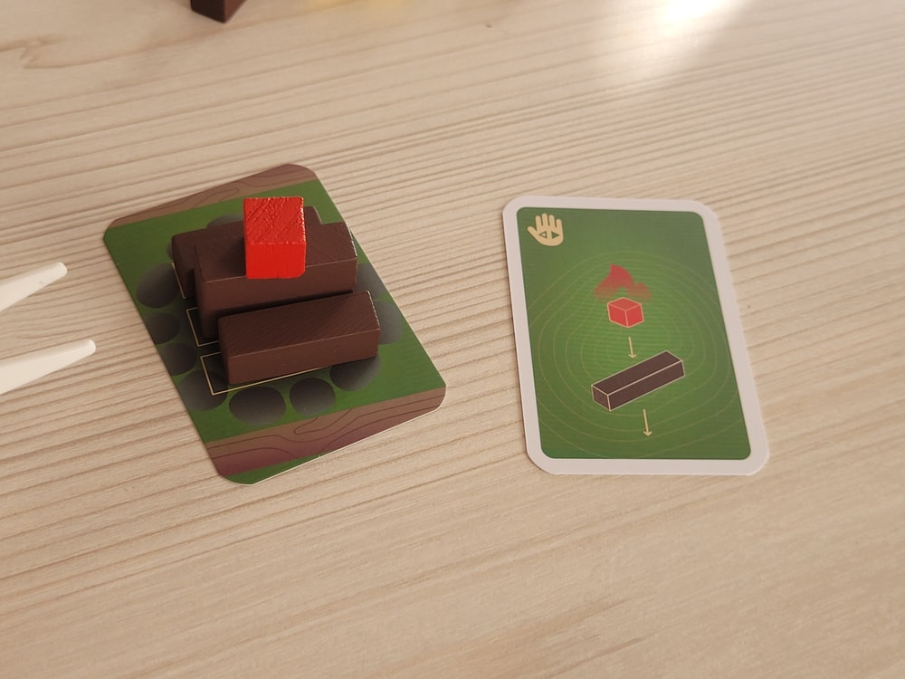 По отзывам мне казалось, что игра чуть более вариативна. На самом деле, вариант действий всего один - открыл карту, взял пинцетом детальки, которые на ней изображены, и ставь на общее основание (костер).