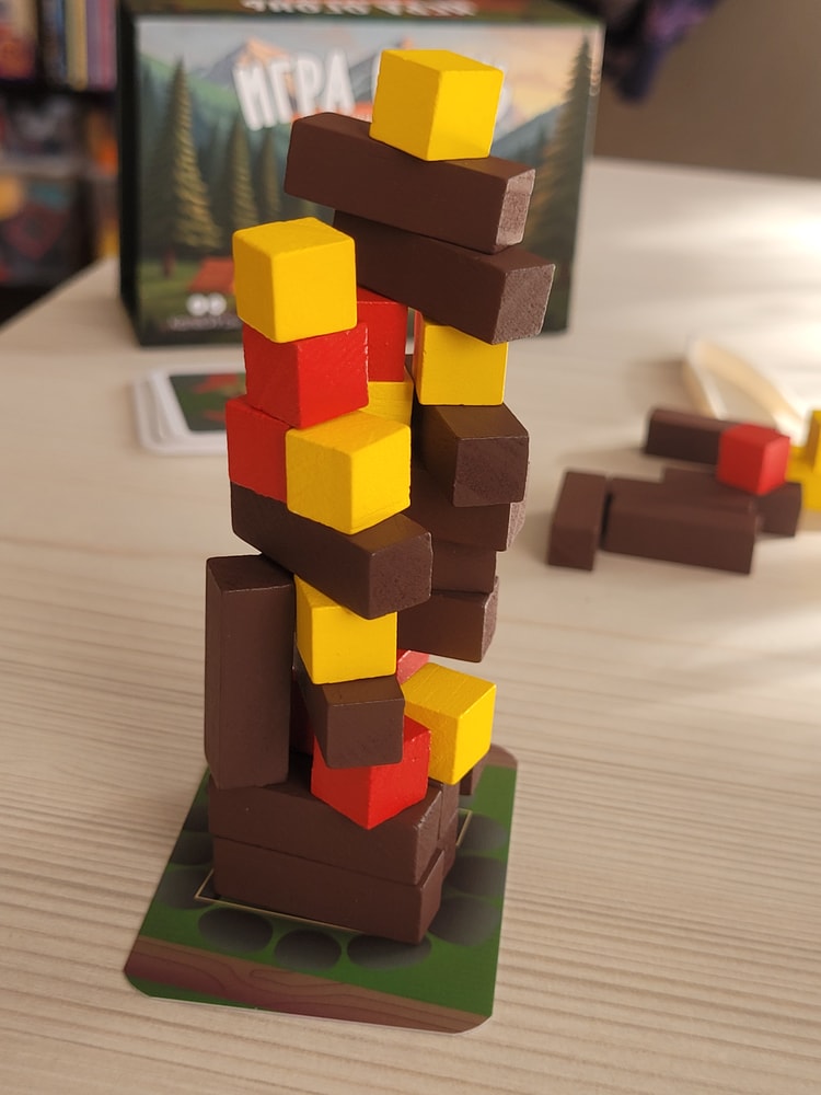 Сыну игра понравилась, постоянно пытается поставить свои детальки так, чтобы после него у меня не было шансов что-то разместить. 😅 Мы решили попробовать играть до последнего блока, забирая себе в качестве штрафов то, что упало. Вечером попробуем, посмотрим, что получится.